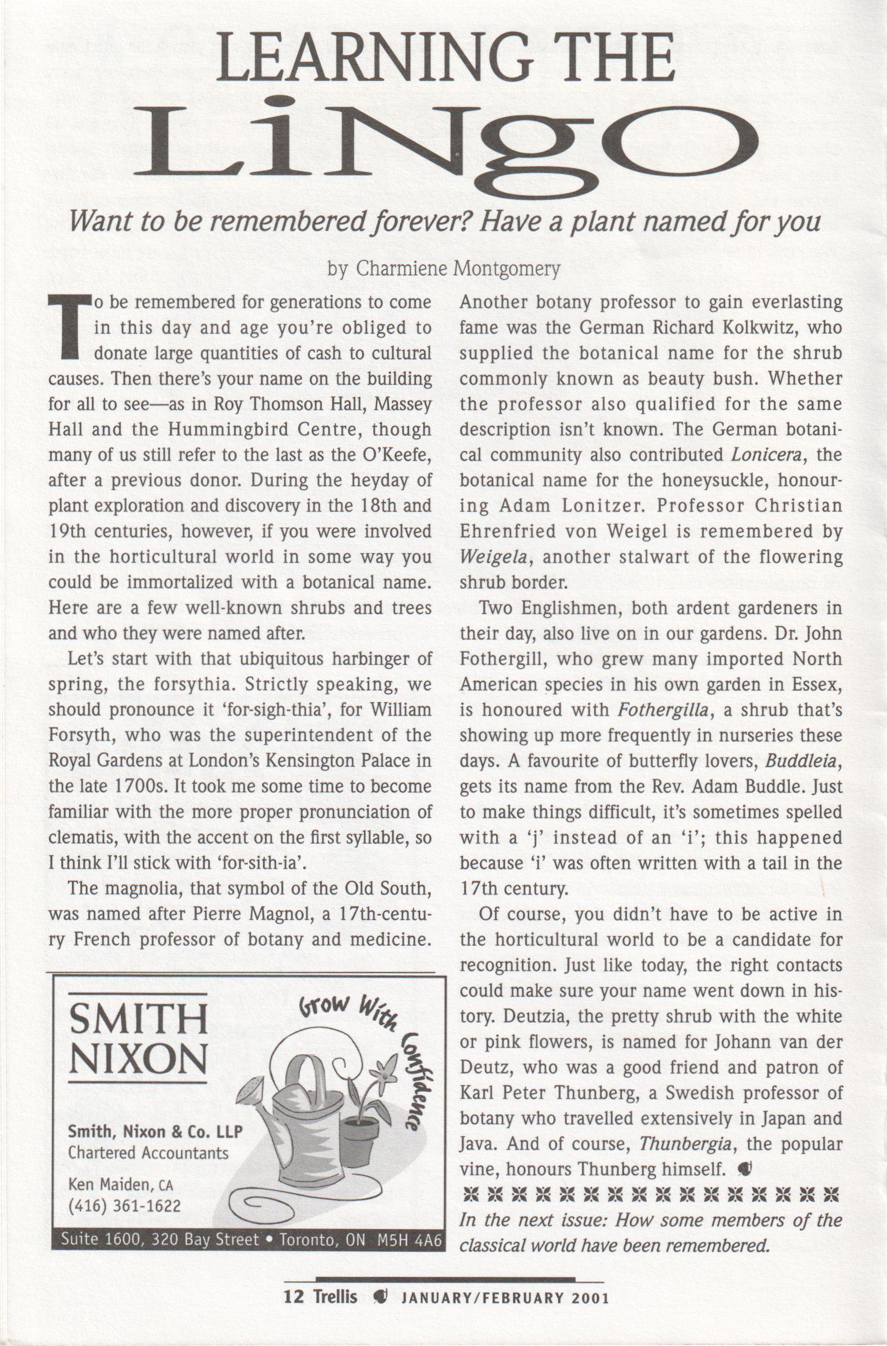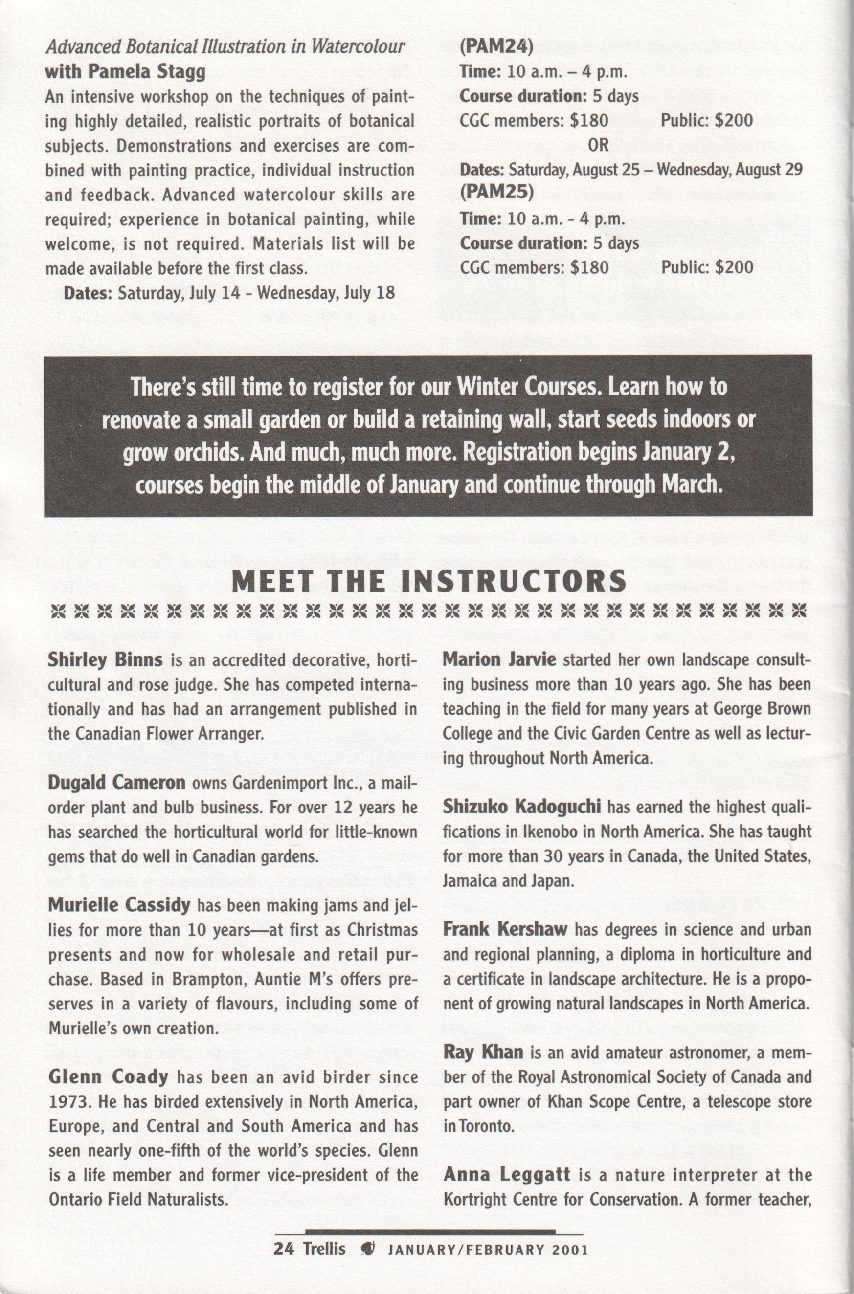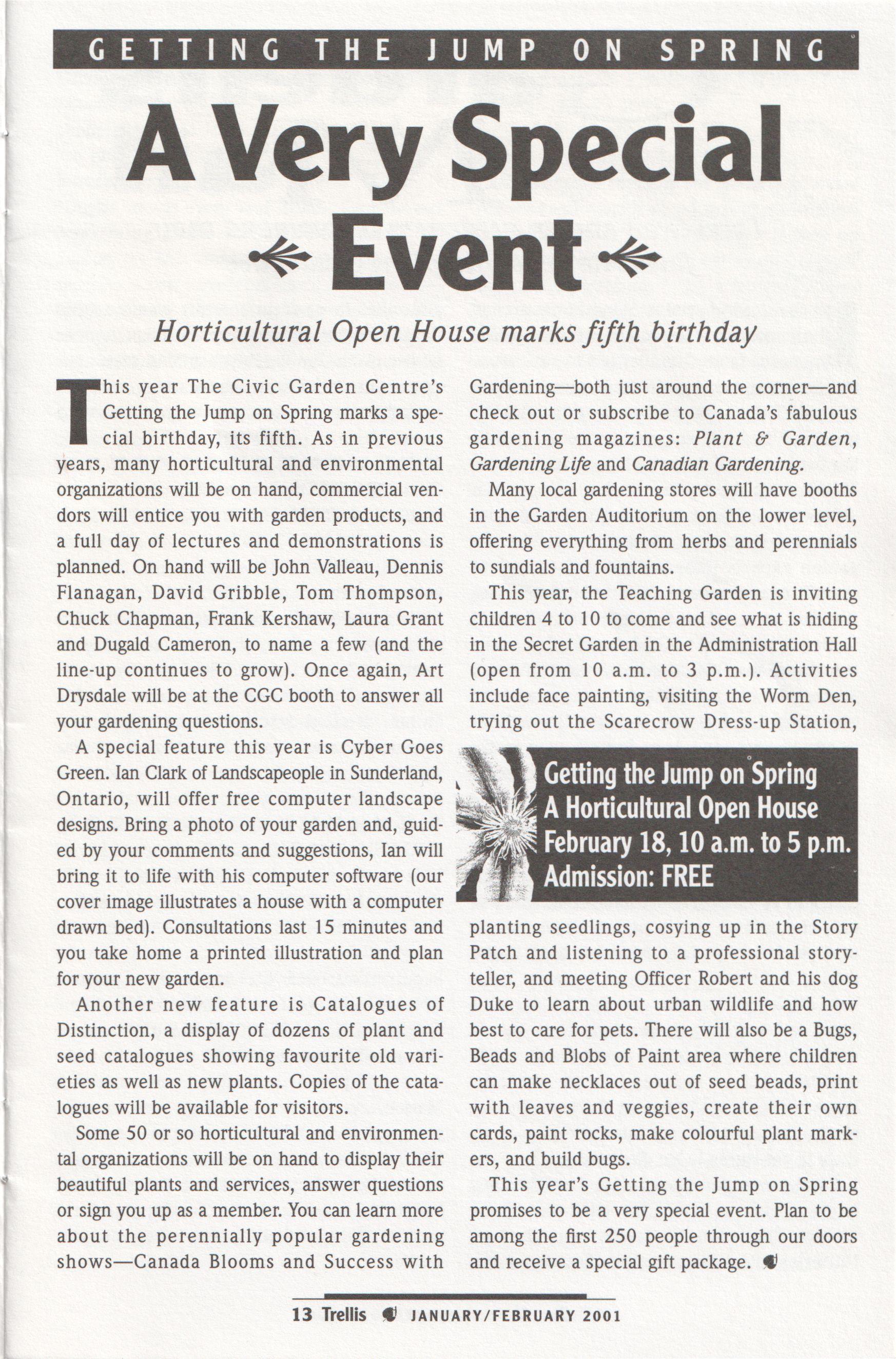 and a dedicated committee, it has attracted more advertising revenue and has been able to grow in size and content. Gone is the newsletter format; here to stay are excellent articles on everything from Latin for gardeners to touring historic Toronto gardens, as well as all the information you need about what is going on at your Centre.