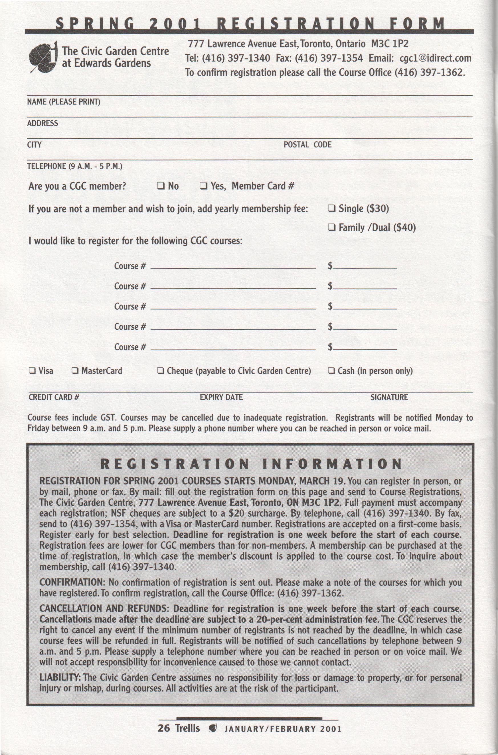 Course Registration ............. (416) 397-1362