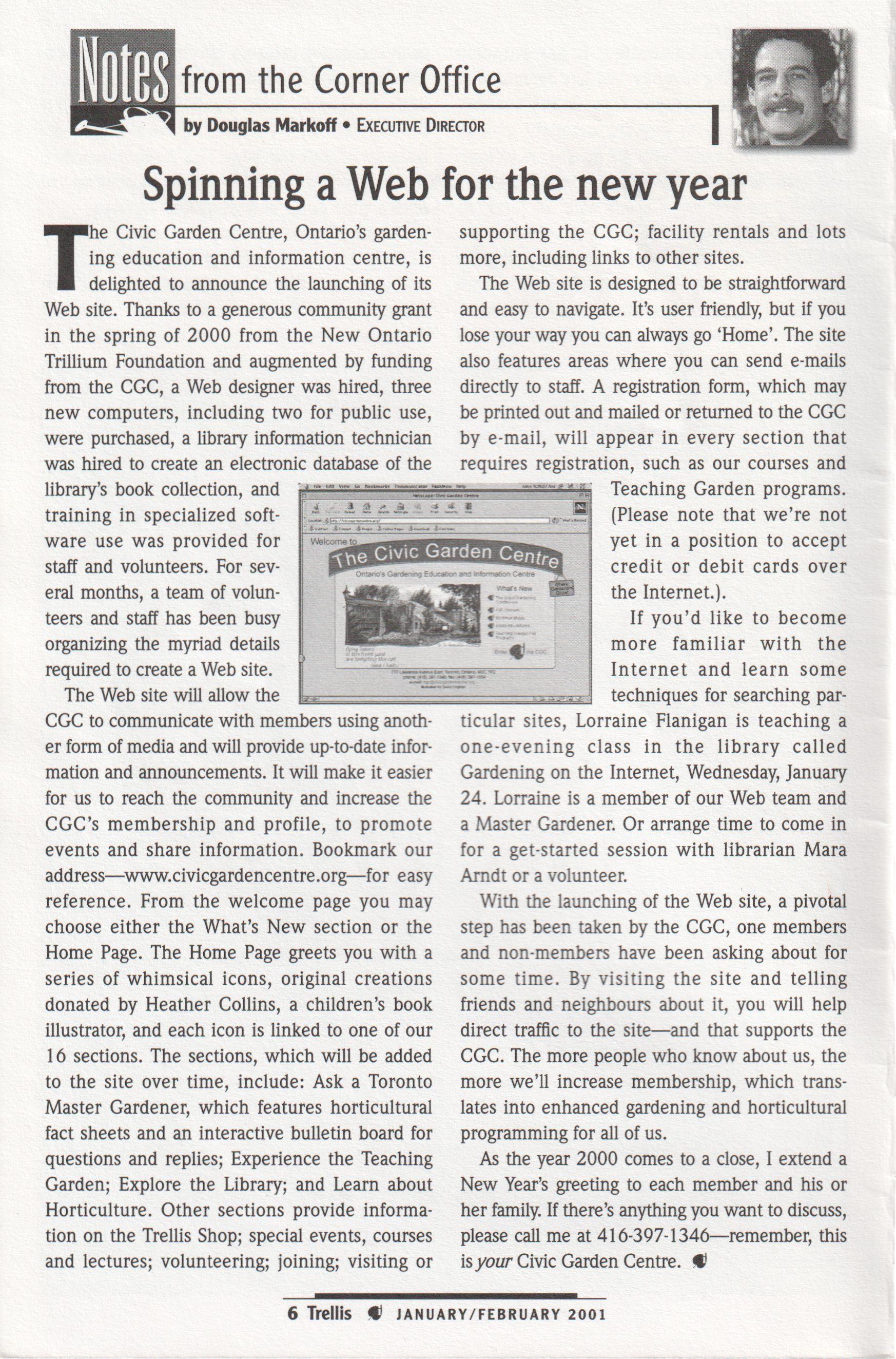 Congratulations and thanks to everyone our executive director, staff, volunteers, members and the board of directors. Each and every one contributed to the success of the CGC in 2000. And to all ofyou, a Happy New Year. @