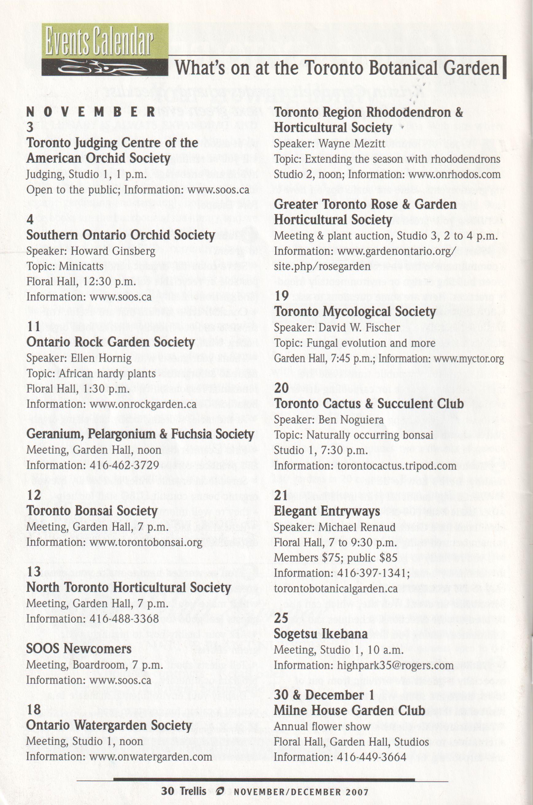==l What's on at the Toronto Botanical Garden|