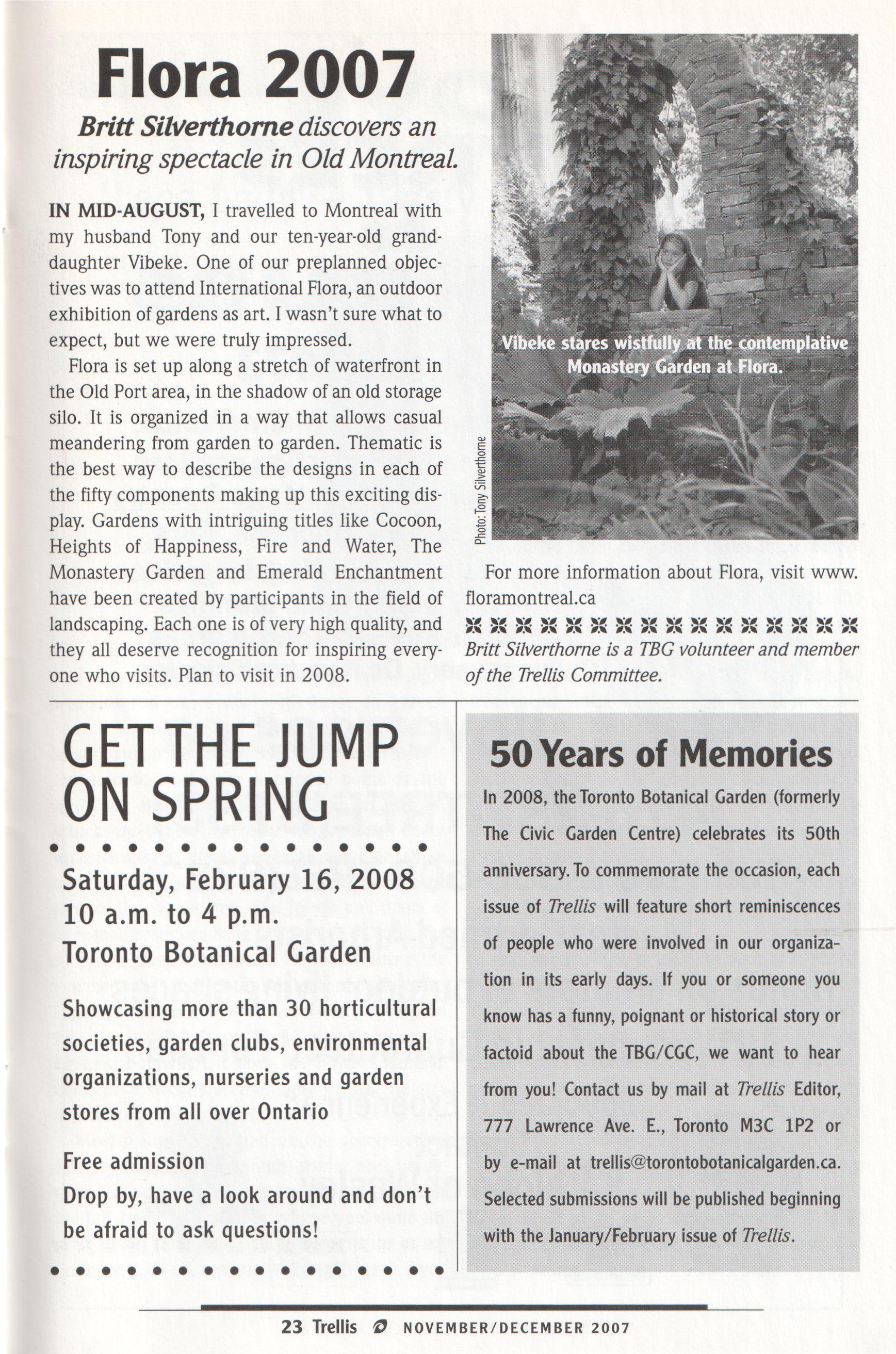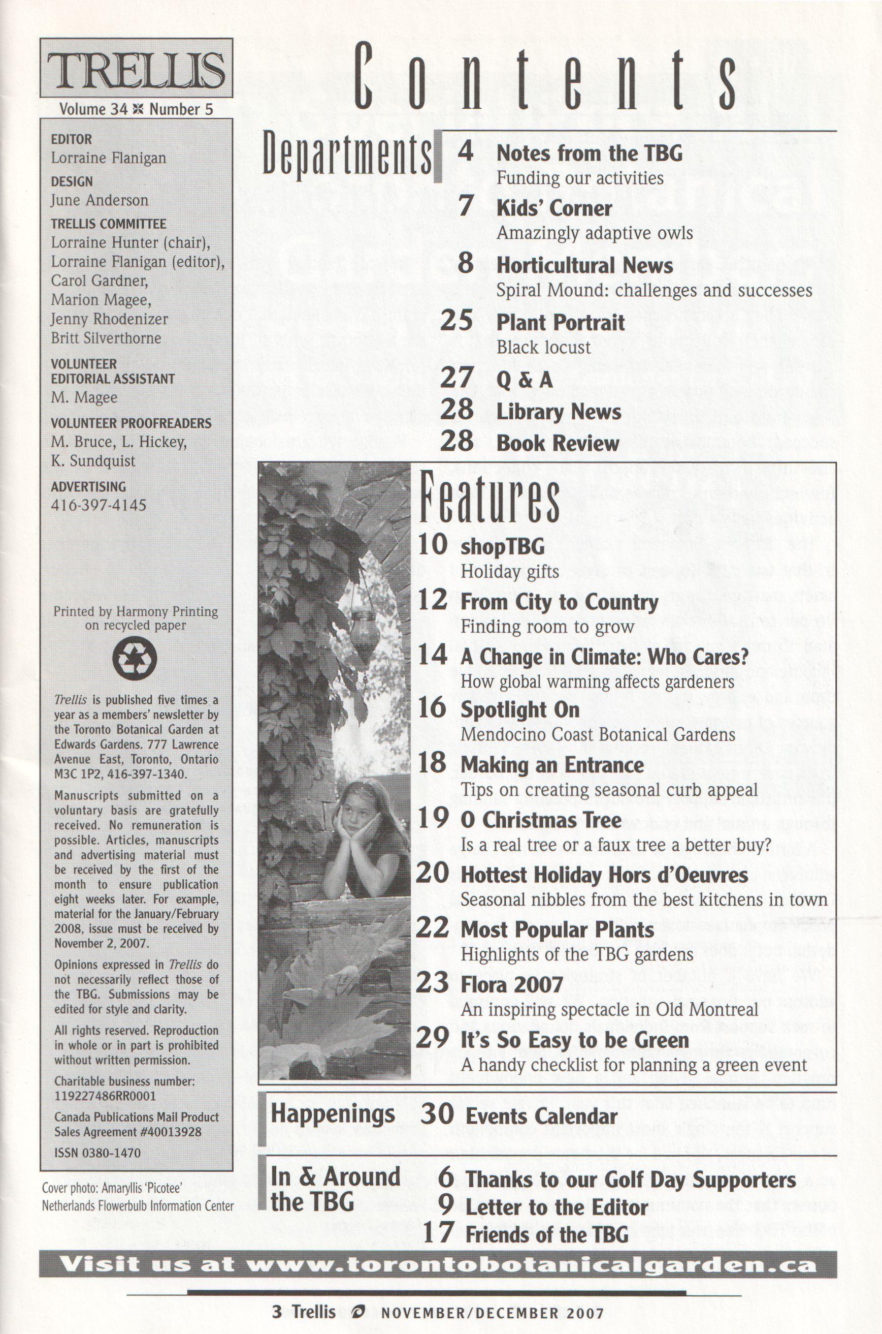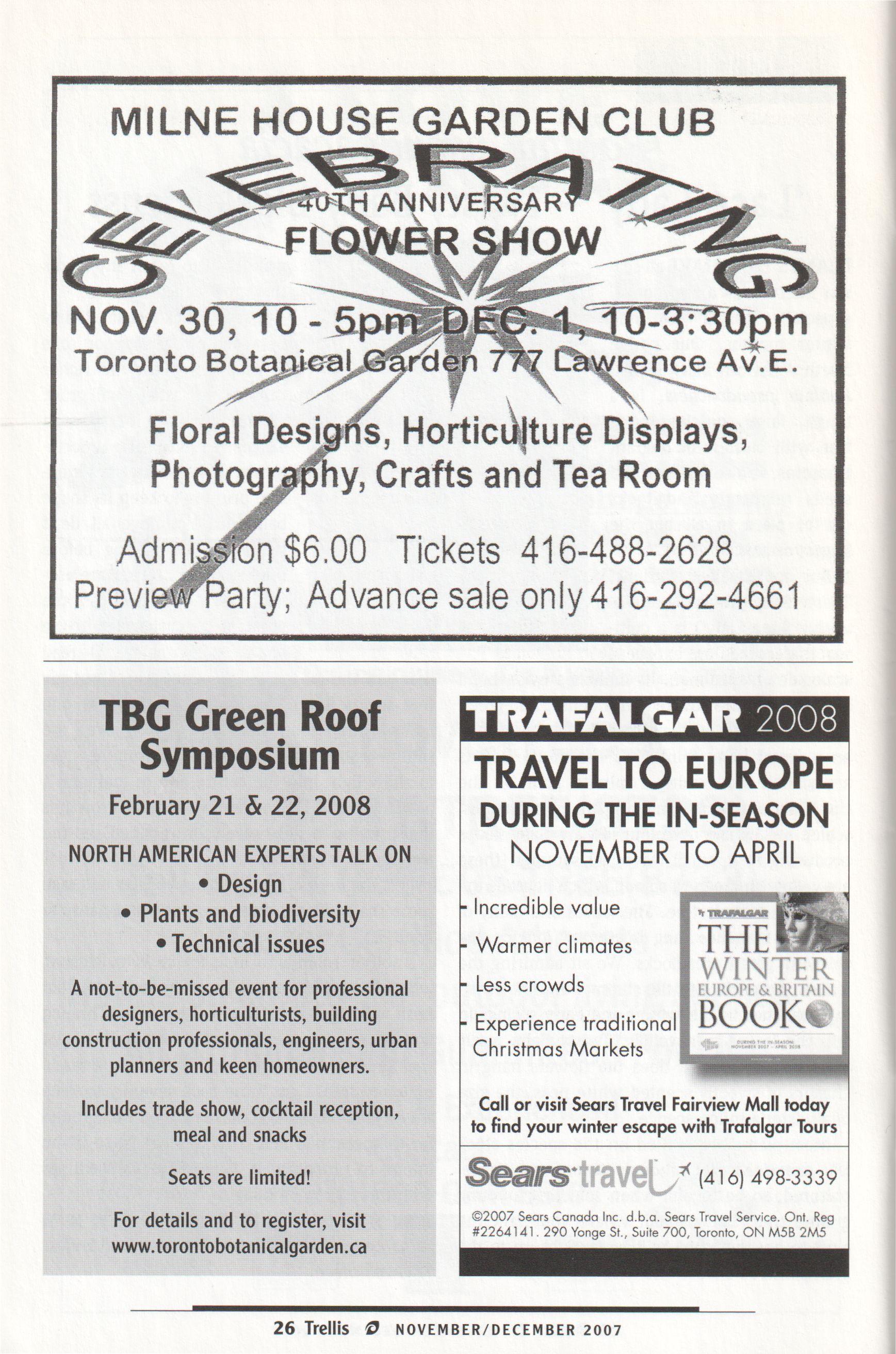 A further challenge for us is thatwe do not charge admissionto the gardens. We are situatedin Edwards Gardens, a city park, and the current municipal policy emphasizes accessibility. Free access is wonderful, but it does not help our bottom line.