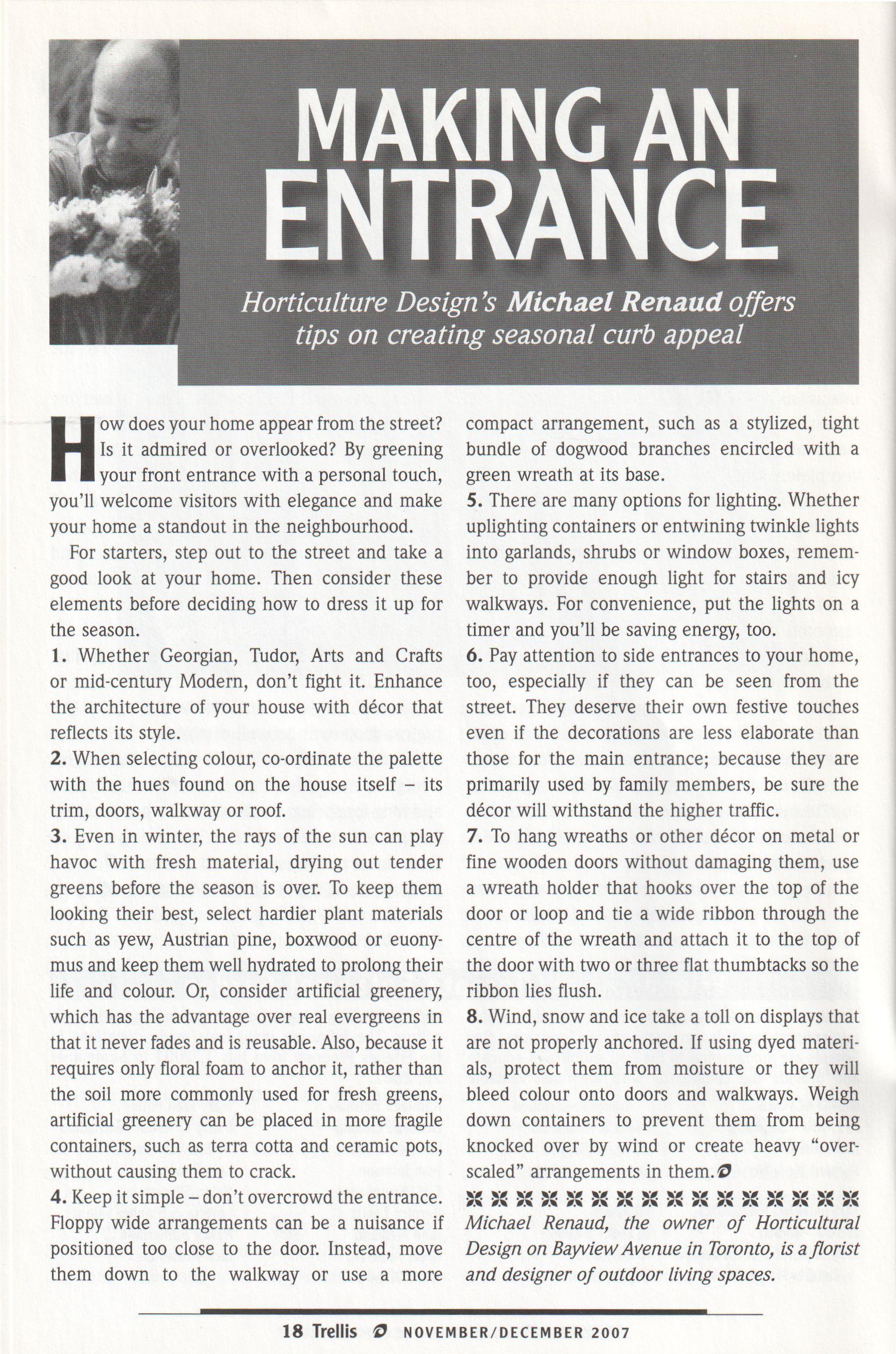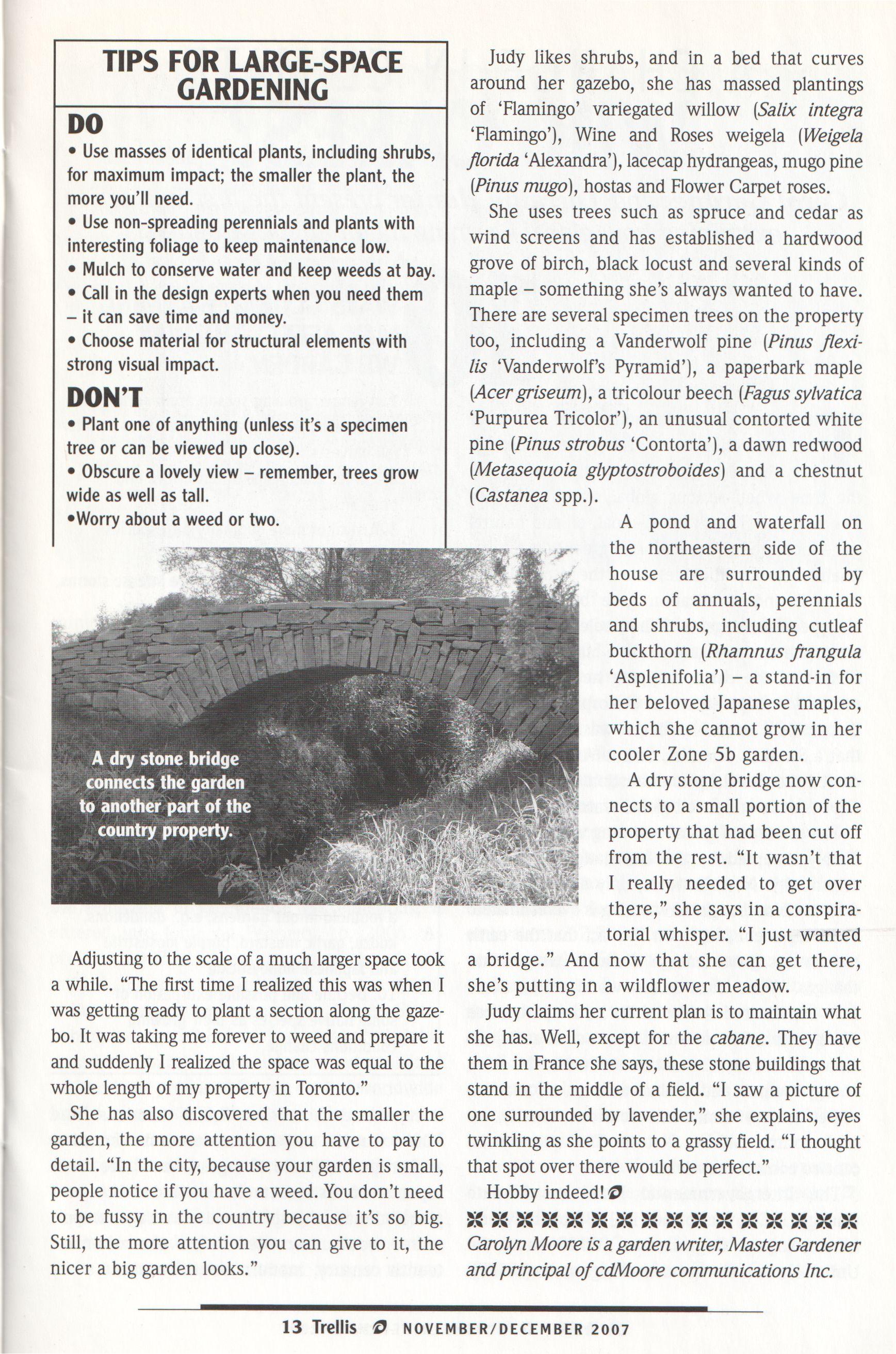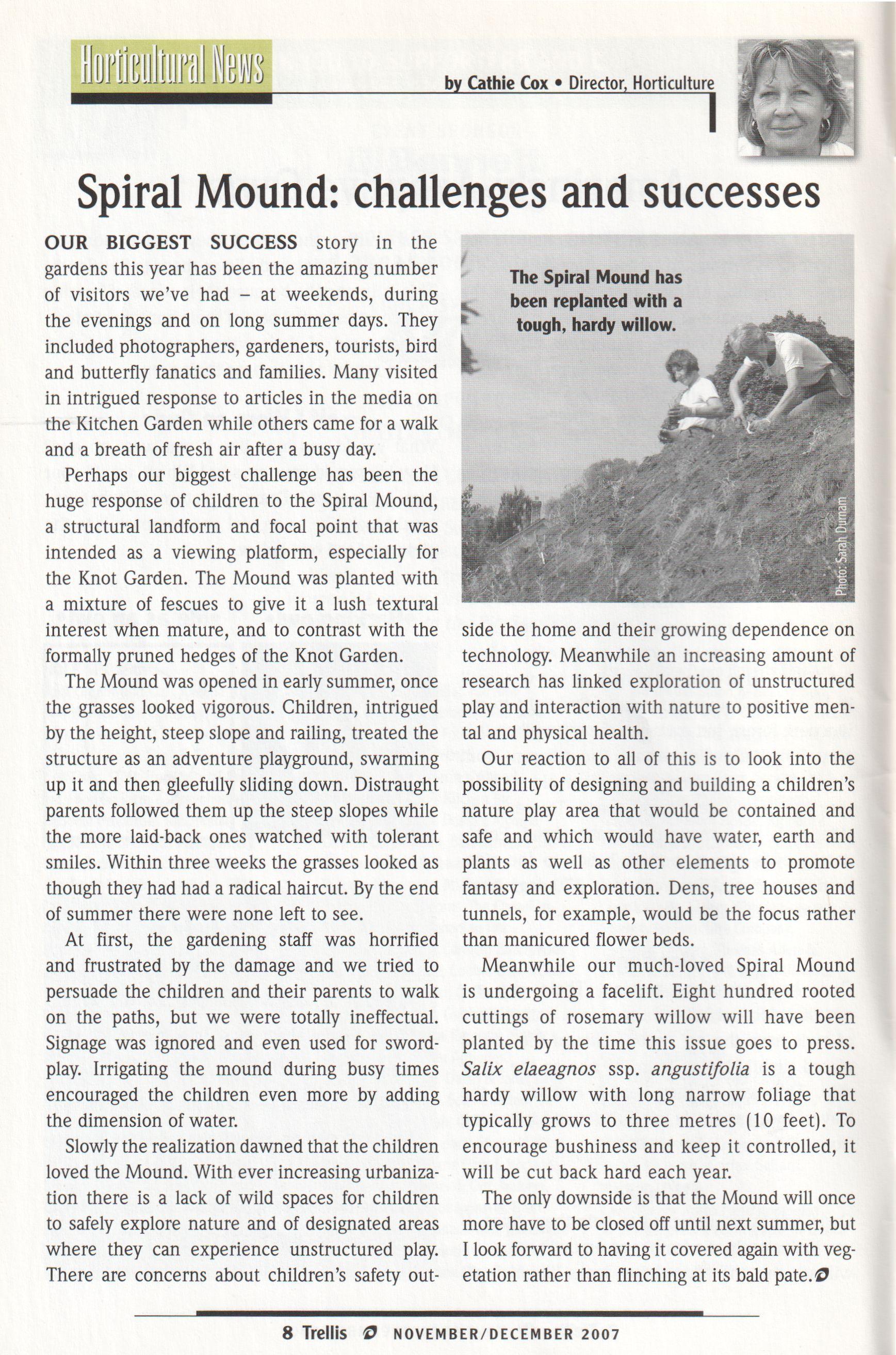 A further challenge for us is thatwe do not charge admissionto the gardens. We are situatedin Edwards Gardens, a city park, and the current municipal policy emphasizes accessibility. Free access is wonderful, but it does not help our bottom line.