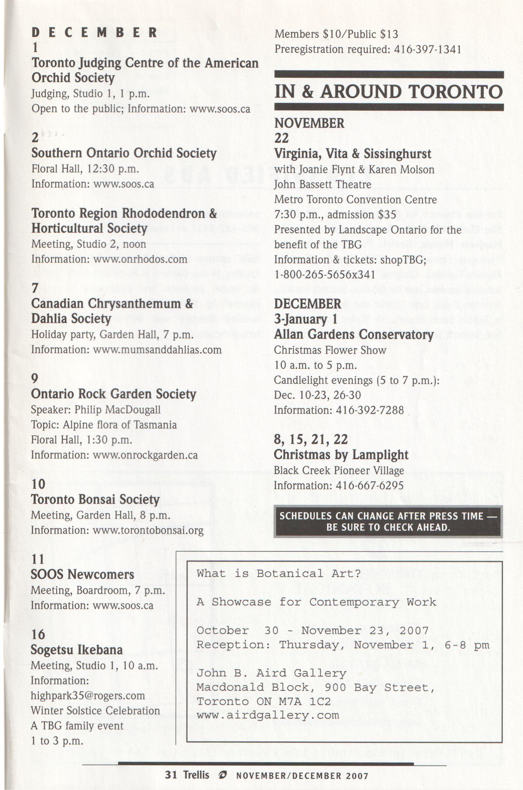 Meeting, Garden Hall, 8 p.m. SCHEDULES CAN CHANGE AFTER PRESS TIME Information: www.torontobonsai.org | BE SURE TO CHECK AHEAD.