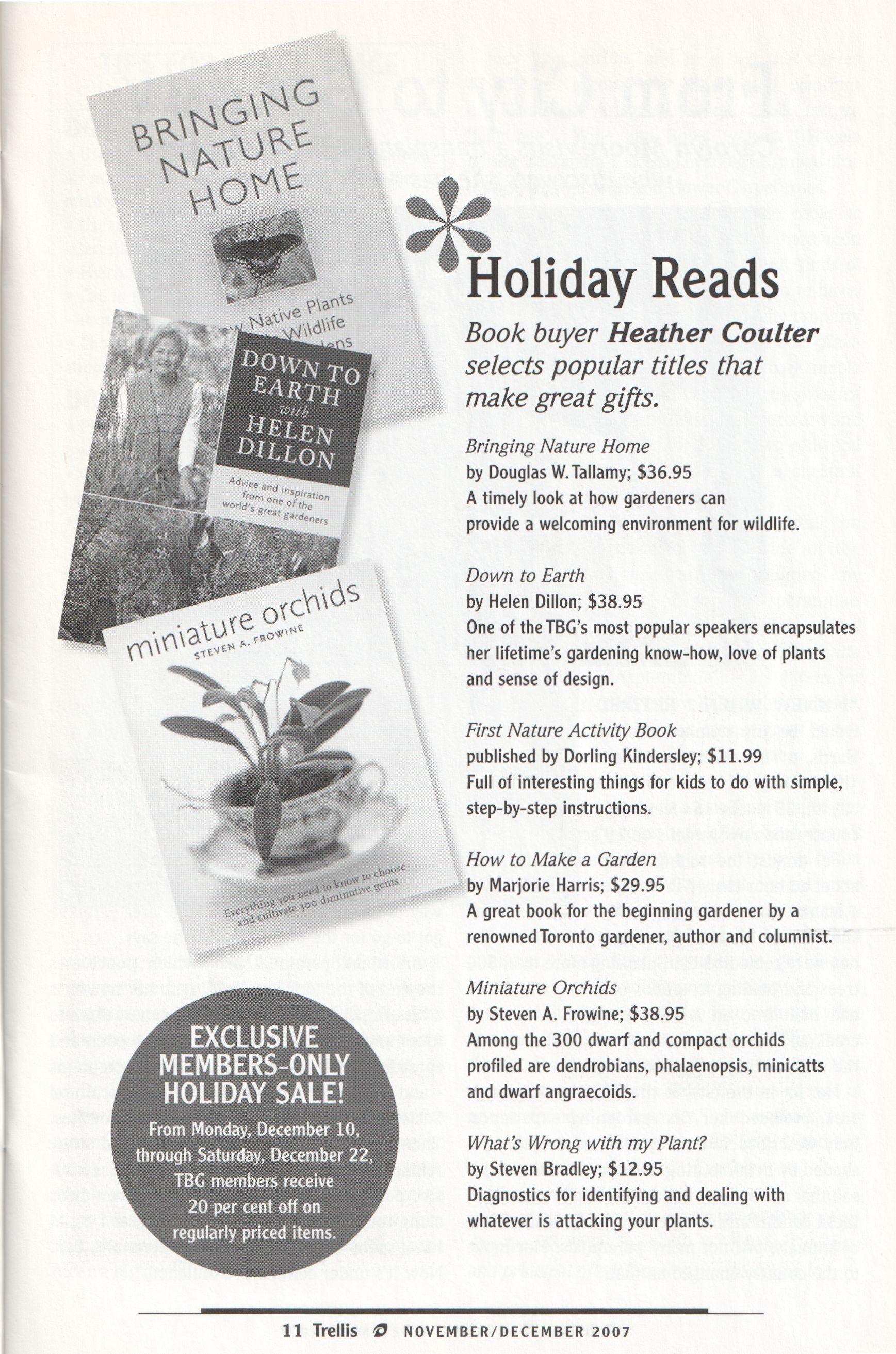 nursery and seed catalogues as well as a great selection of children s gardening books. Horticultural Information Services offers free gardening information year-round, and shop TBG has