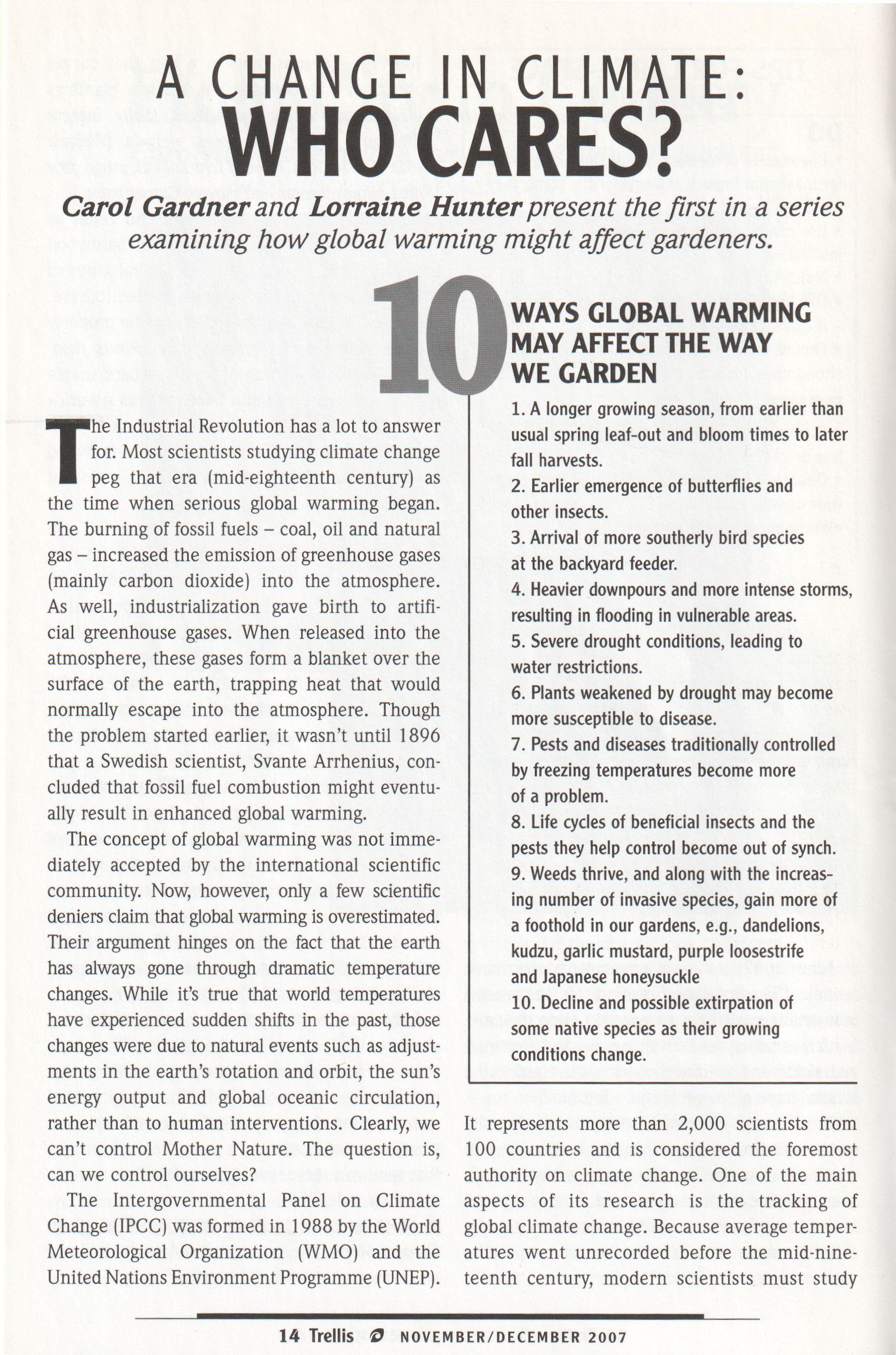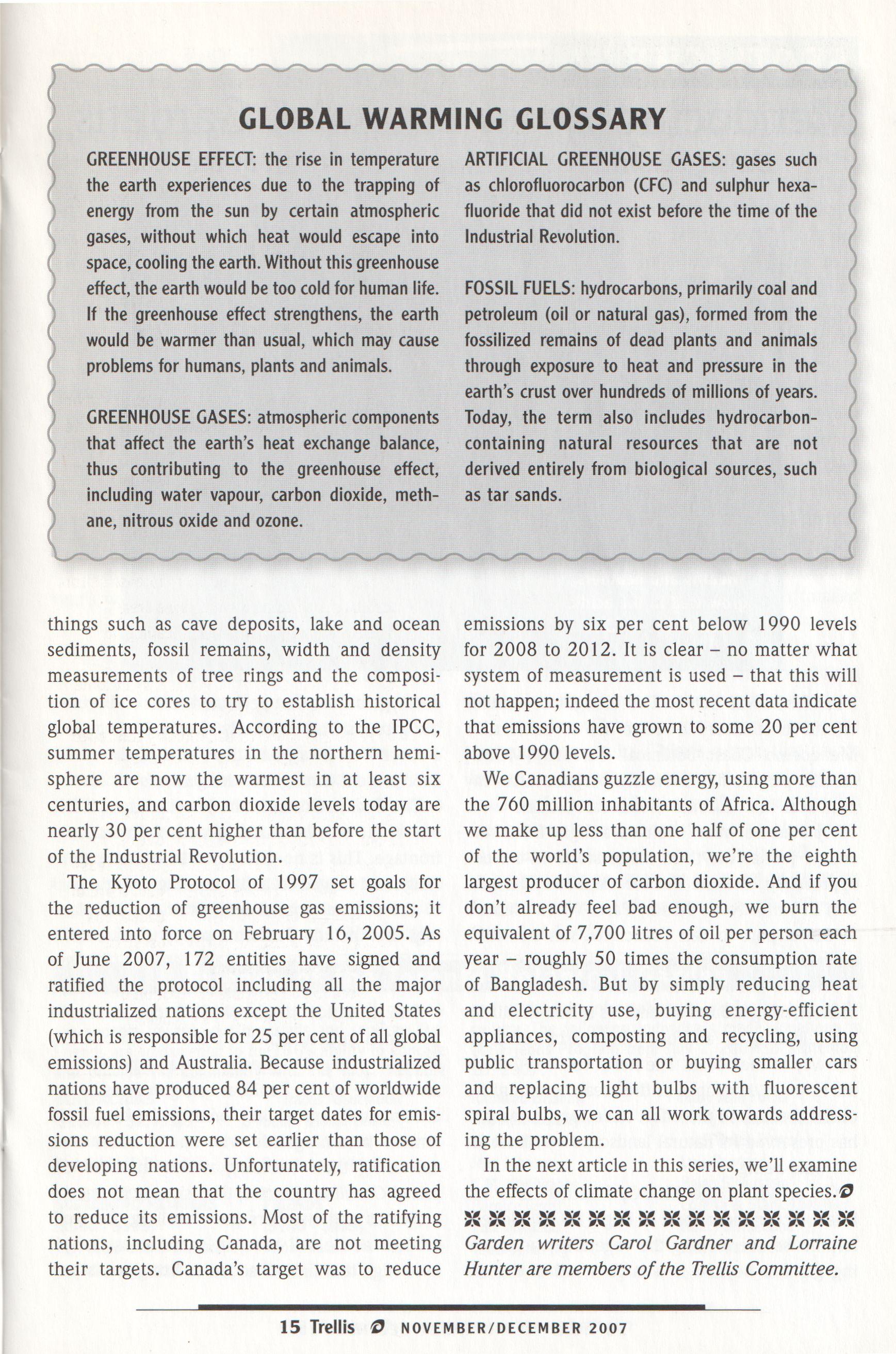 Brian Bixley, Awdrey Clarke, Mark Cullen, Camilla Dalglish, Sondra Gotlieb, Marjorie Harris, LorraineJohnson, Michele Landsberg, Susan Macauley, Helen Skinner
