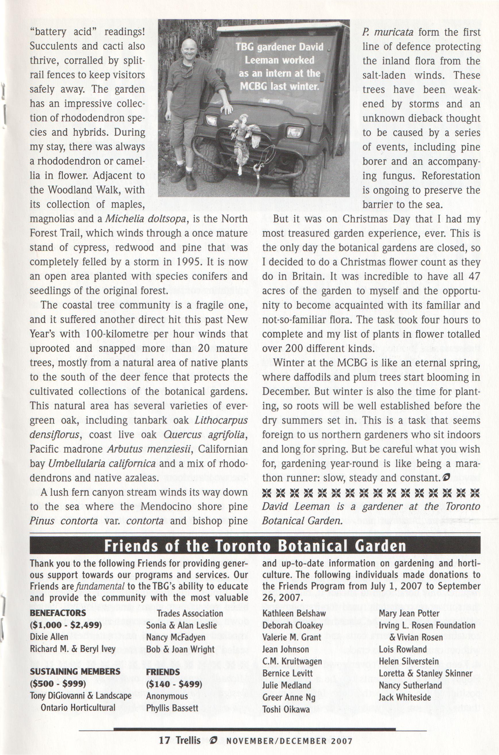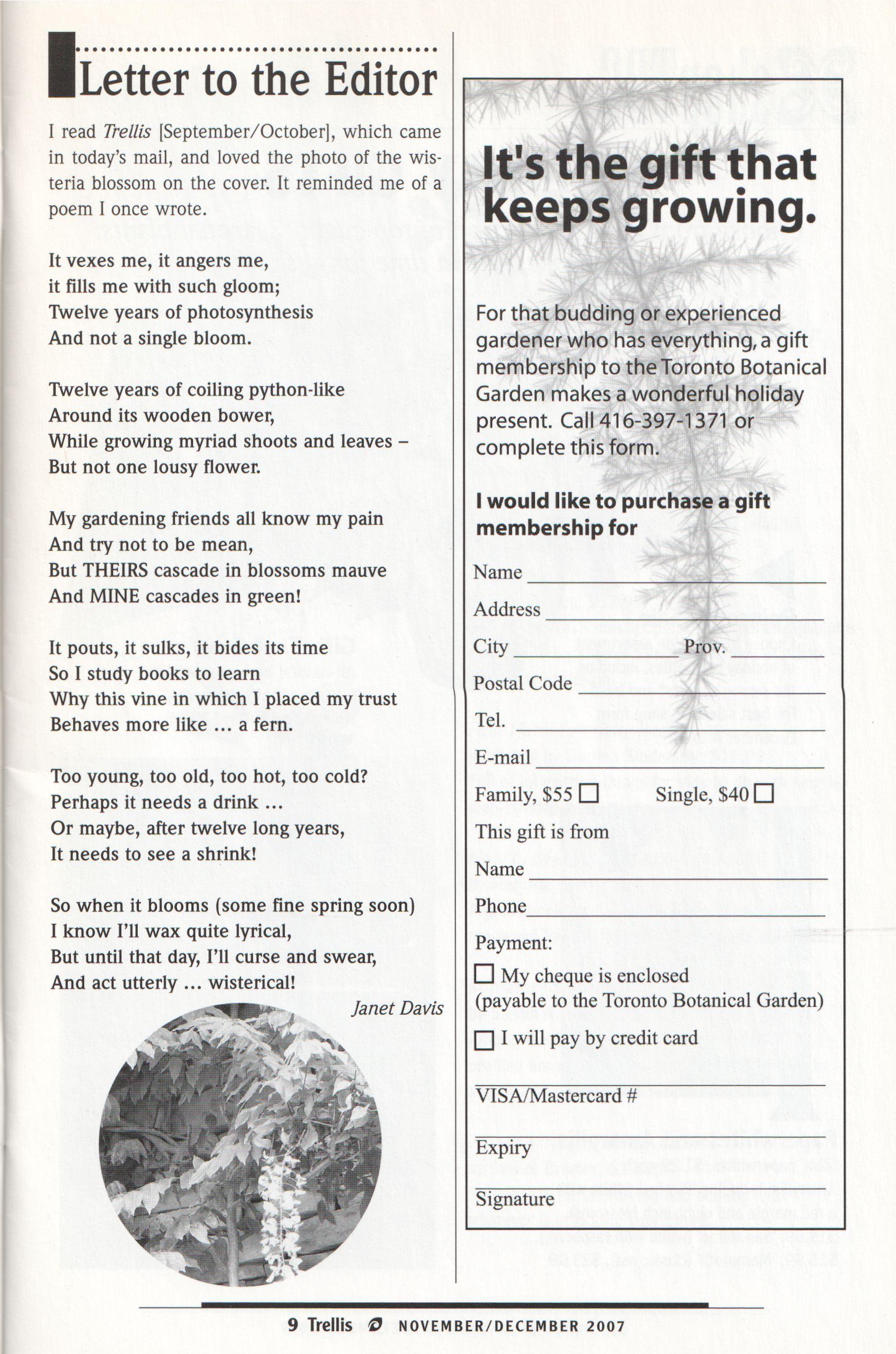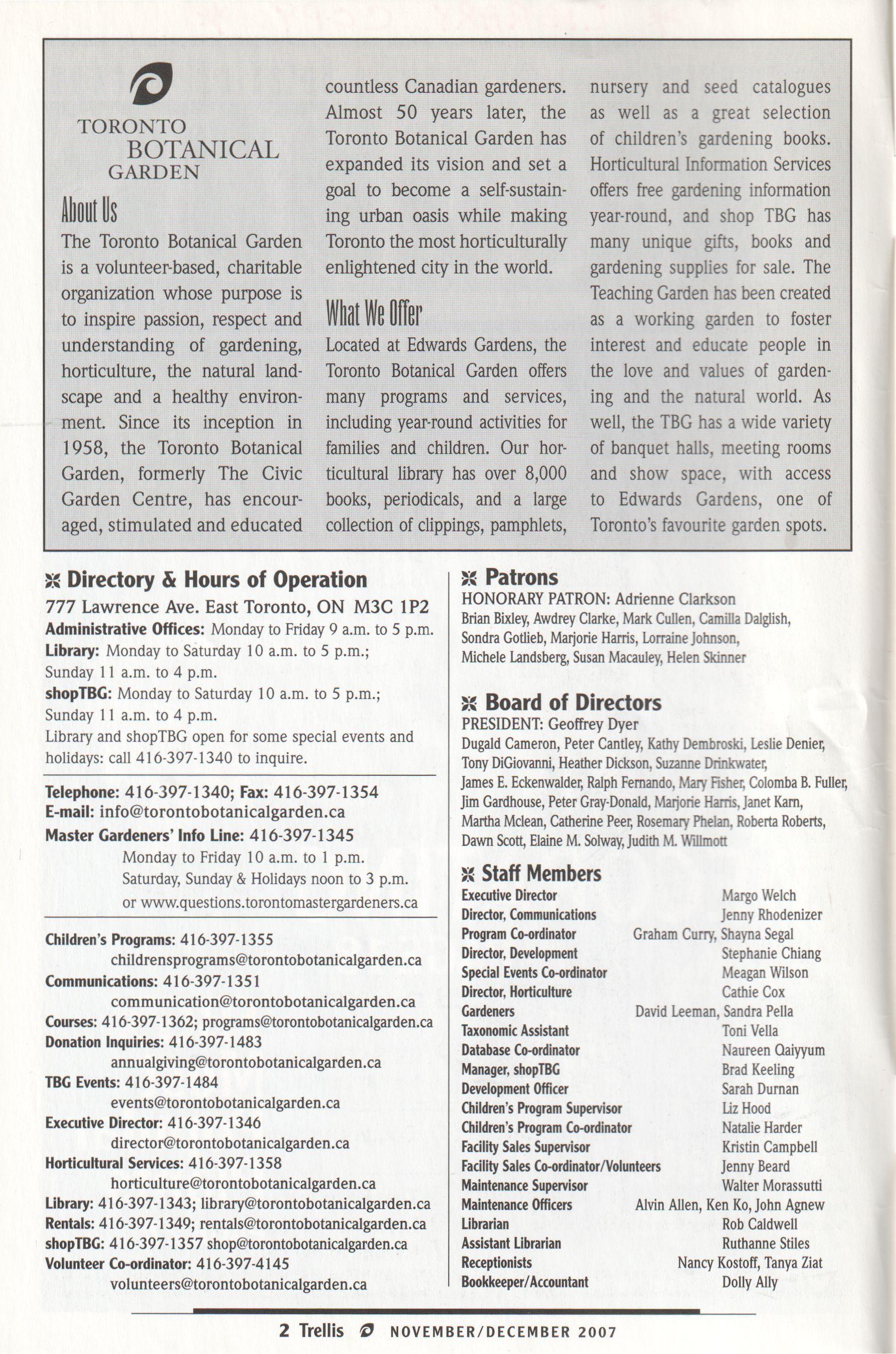 [ want to thank each ofyou for being a member of the Toronto Botanical Garden and to encourage you to invite others to join. We welcome your comments and ideas on how to improve our operations and to build financial stability. @