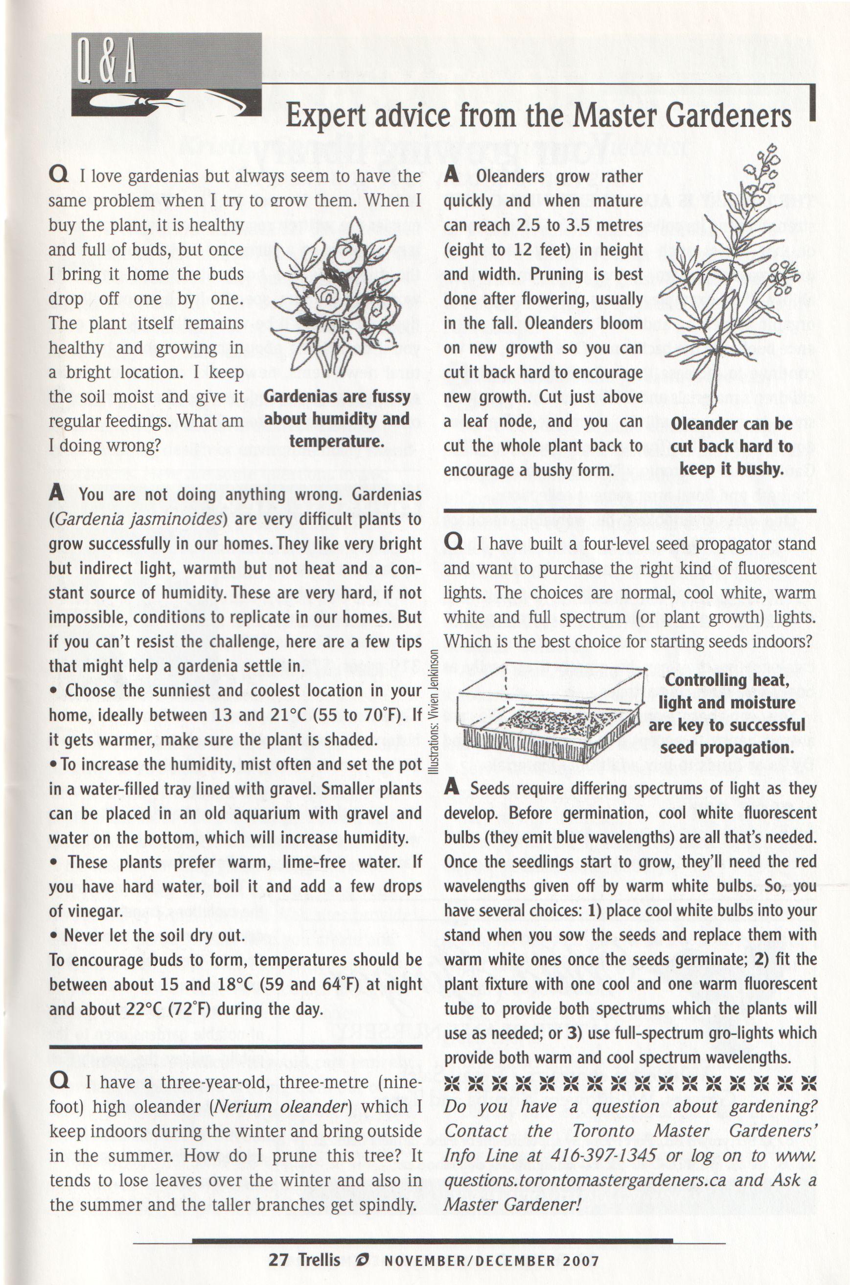 Master Gardeners Info Line: 416-397-1345