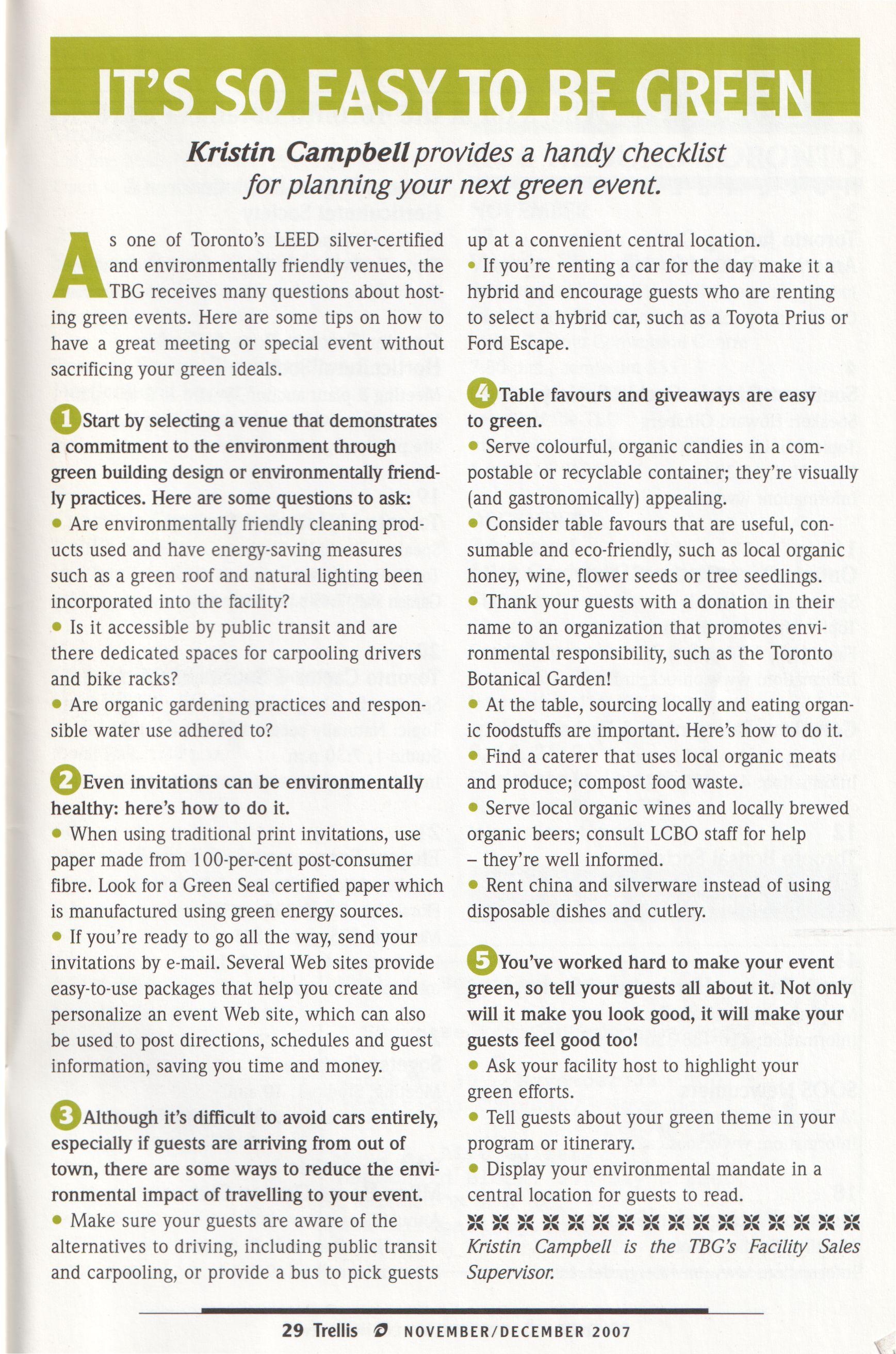 ® Thank your guests with a donation in their name to an organization that promotes environmental responsibility, such as the Toronto Botanical Garden!