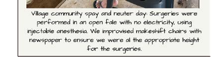 Understanding that different cultures may not prioritize routine veterinary visits as Western clients do was a valuable learning experience. Working in resourcelimited settings, I developed transferable skills, including performing high-volume sterilization surgeries without basic amenities like electricity, utilizing multimodal