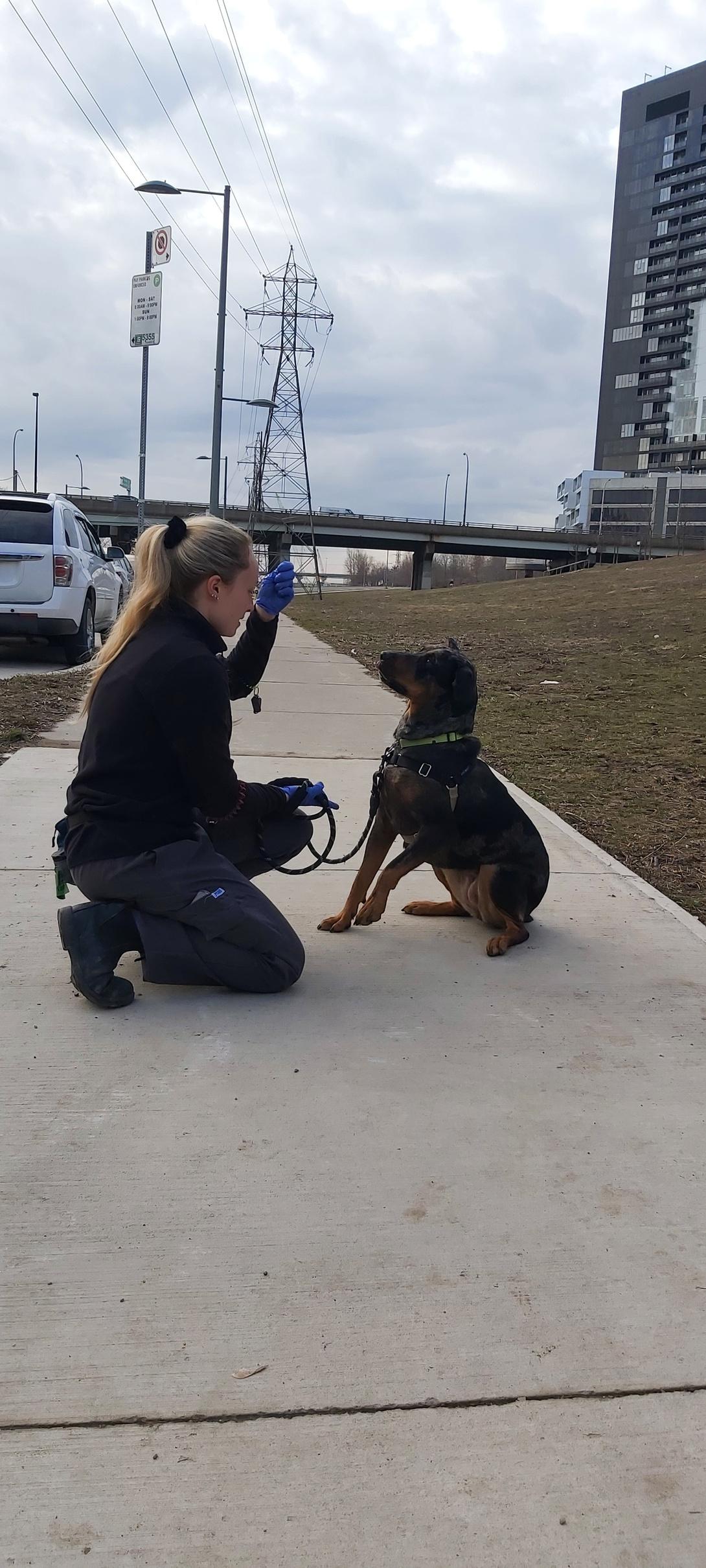 Recognizing the need for a long-term solution, our training team stepped in to help Dolly with her reactivity. Despite struggling to adjust to the bustling city life of Toronto, she made significant progress under the guidance of our trainers Her unwanted behaviours, such as leash pulling and reactivity, improved over time, and she confidently strolled down the busy streets as if she owned the city!