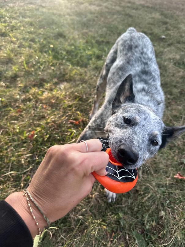 We adopted Sarge this summer after watching for a cattle dog type to come through the shelter My last dog (and best friend in the whole entire world) had DNA tested large part cattle dog, which got me interested in the breed. Sarge has a bobbed tail so seems to be a “stumpy tail cattle dog” which is a real thing says the internet