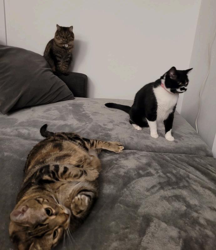 I currently live at my father’s house, I am blessed to have 3 cats of my own, named Molly, Luna and Minx. We have our family cat, Lucy and my father adopted a cocker spaniel poodle, Bruno, one year