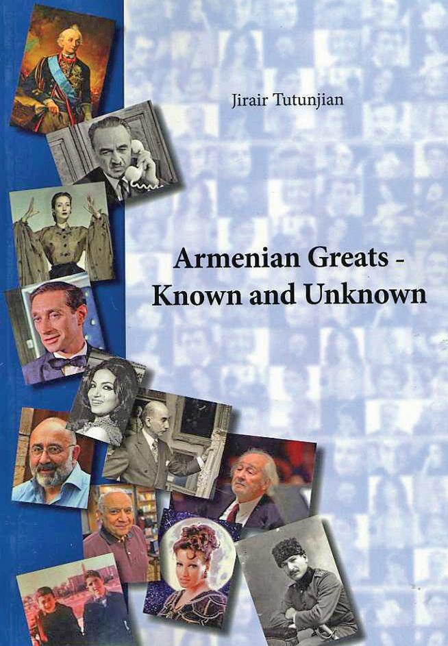 But you don’t need to believe just me. Read his new book carefully, and it is prudent to read it in installments rather than straight through because of its range. Comprised of thirty-nine articles (running from a page to four pages in length) and a final list of “possible” Armenian greats, it is (as he himself puts it) “overwhelmingly about remarkable but often unsung Armenians whose Armenian identity is not known even to Armenians.” Perhaps this is why you won’t find profiles of Atom Egoyan, Arsinee Khanjian, Isabel Bayrakdarian, Peter Balakian, Lorne Shirinian, Lucine Kasbarian, Alan Whitehorn, Peter Oundjian, and many other luminaries in this book. They are