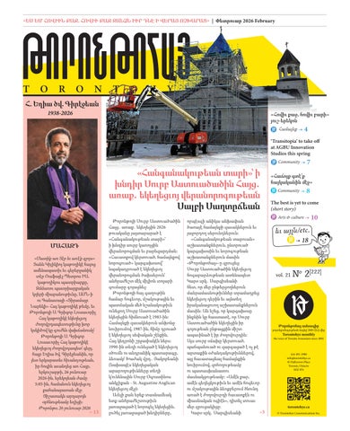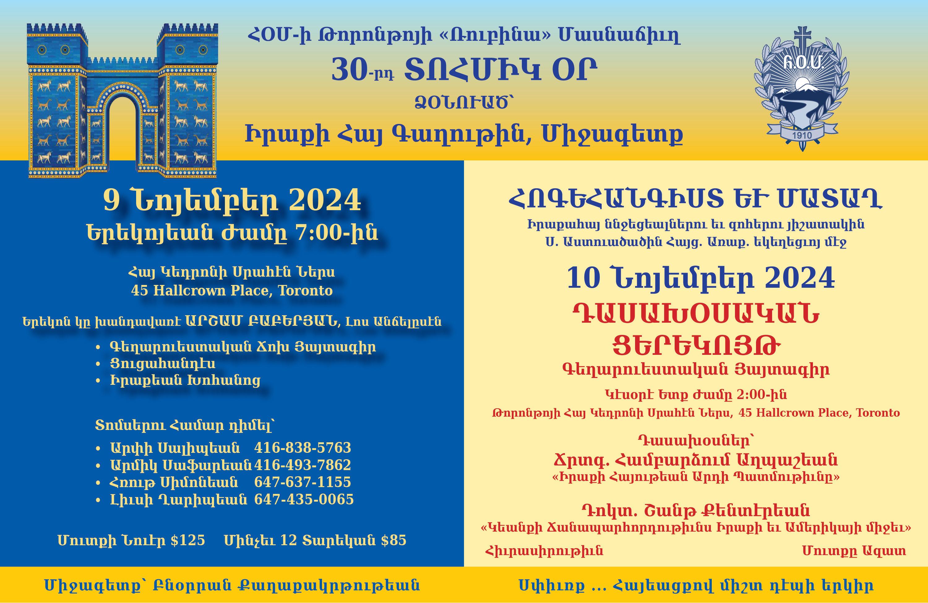 To advertise in Canada’s only Armenian monthly newspaper, email ads@torontohye.ca