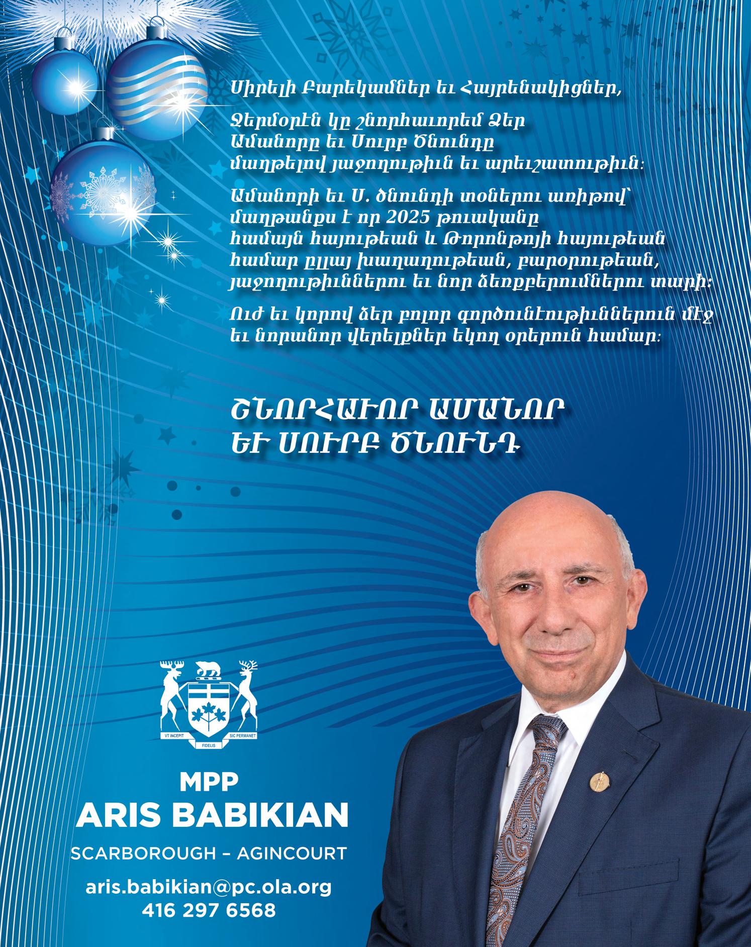 Associate editor/Staff writer Diroug Markarian Garabedian diroug@torontohye.ca