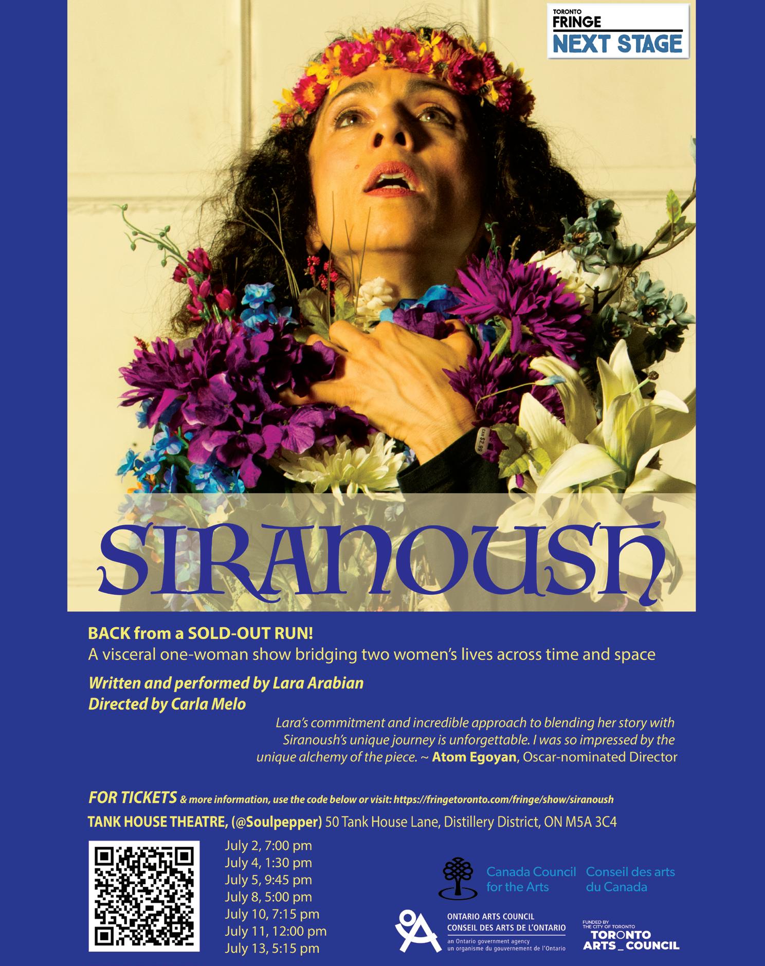 For full details and showtimes, visit https:// fringetoronto.com/fringe/show/siranoush. ֎