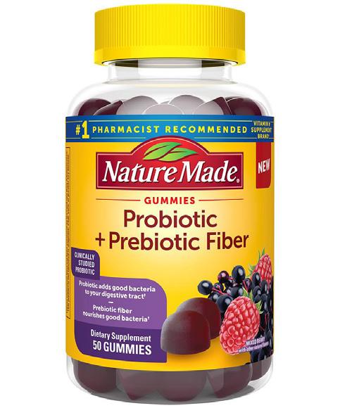 Made with clinically studied probiotic Lactospore® and prebiotic fiber, Nature Made Probiotic + Prebiotic Fiber Gummies nourish good bacteria to support your gut health†.