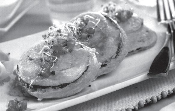 4.Reboce las berenjenas rellenas en esta masa y fríalas en una sartén con abundante aceite de oliva muy caliente. Una vez estén bien doradas por las dos caras, escúrralas con una espumadera. Sirva bien caliente.