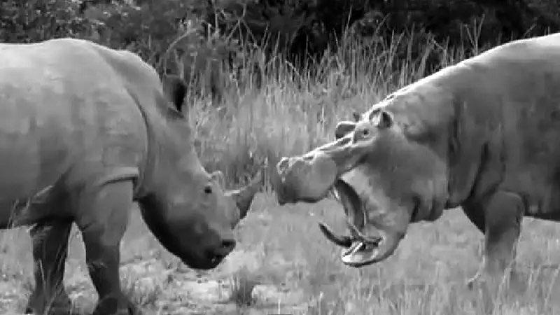 La carrera de un rinoceronte es mortal hasta el punto de que, cuando pelean entre ellos, no embisten con los cuernos. Su comportamiento territorial los hace peligrosos, pero más aún a los hipopótamos, moles animales de más de tres metros que pesan hasta tres toneladas. Los hipopótamos pasan gran parte del día en el agua y salen a comer al anochecer. Son animales tranquilos, pero si piensan que eres un obstáculo en su camino o que amenazas a sus crías, ni la mejor de tus carreras te salvará de sus colmillos de marfil. Los hipopótamos, están considerados como uno de los animales más peligrosos de África. De he-