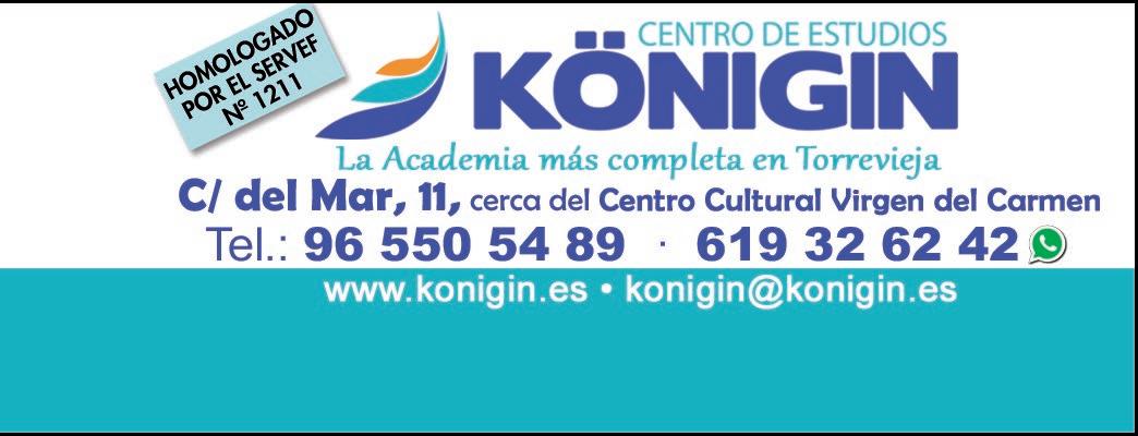 Informática, idiomas, etc. Clases de apoyo todo el año. Comprometidos con la formación. Más de 30 años. C/ del mar, nº 11. Tel.: 96 550 54 89 konigin@konigin.es • www.konigin.es