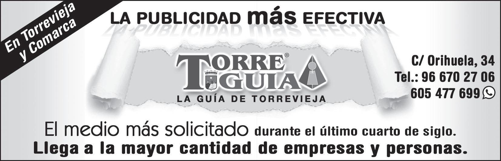 TORREGUIA se financia a base de publicidad impresa en la misma y se distribuye gratuitamente en los principales establecimientos de Torrevieja, todas sus urbanizaciones y La Mata, Guardamar, Ciudad Quesada, Pueblo Bravo, La Siesta, El Chaparral, San Luís, Los Montesinos, Las Torretas, San Miguel de Salinas, Los Balcones, Rocío del Mar, Villamartín, Cabo Roig, La Zenia, etc...