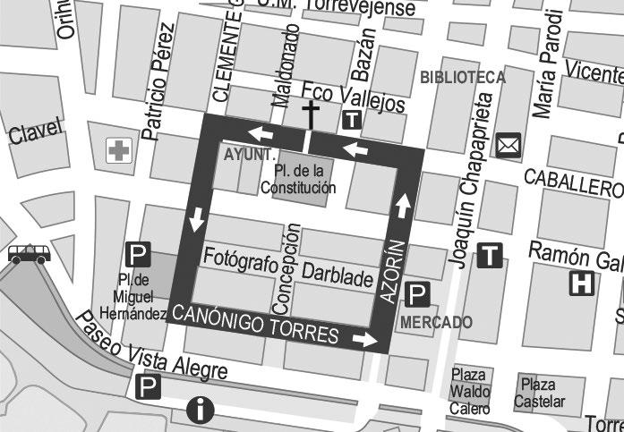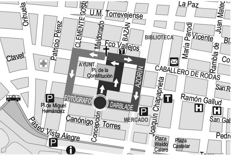 Itinerario: Plaza de la Constitución, Caballero de Rodas, Azorín y Fotógrafos Darblade, hasta su intersección con la calle Concepción.