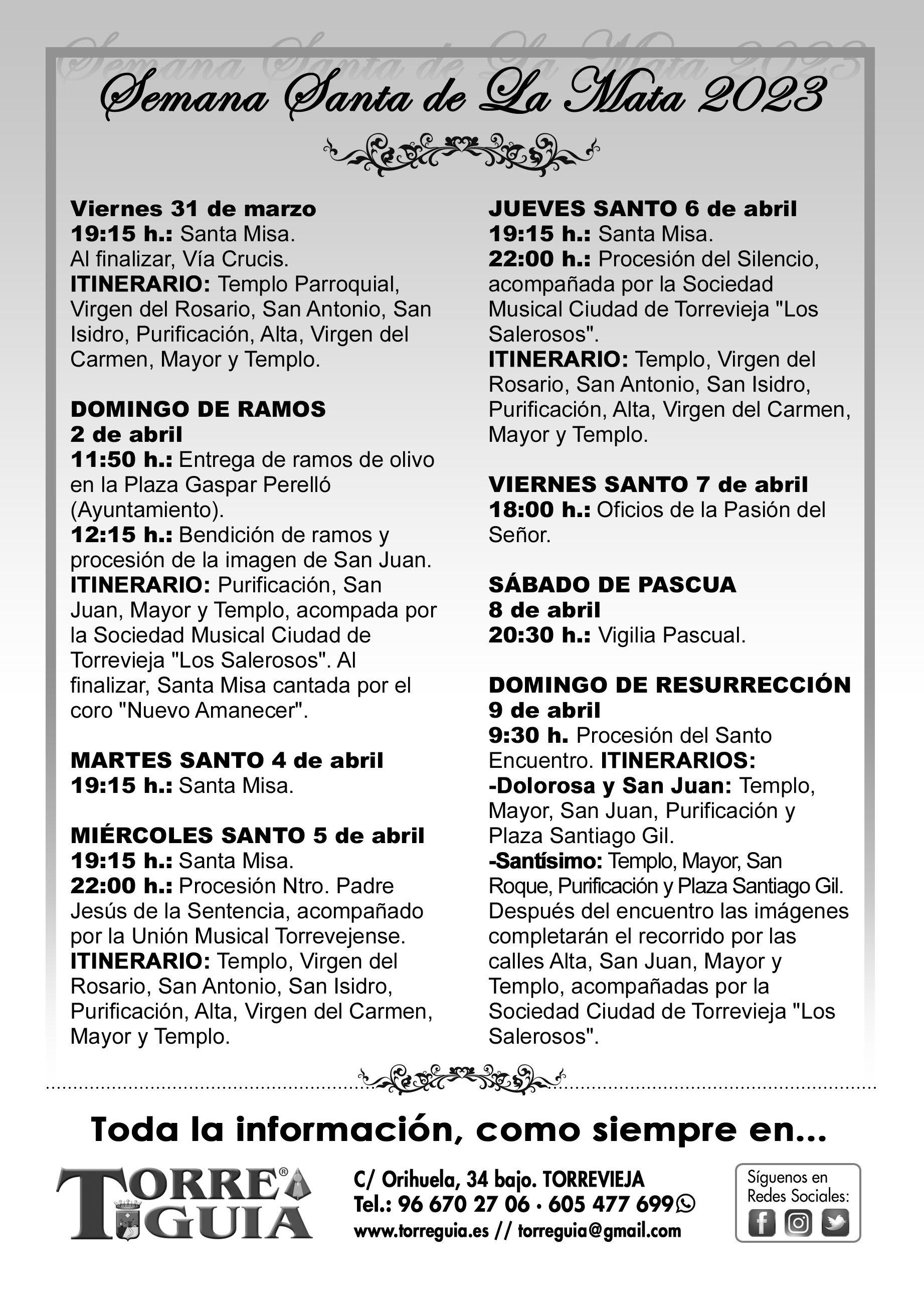 • Cofradía de Ntra. Sra. de la Piedad. Antes de iniciarse la Procesión, intervendrá la Agrupación Coral “Manuel Barberá” para entonar “La Pasión de la Tía Tortas”.