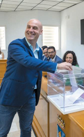 alcalde, Eduardo Dolón, en el momento de depositar el voto para su reelección.