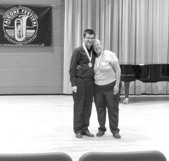 Samuel Hernández Imbernón ha ganado el primer premio y medalla de oro en la categoría de jóvenes tubistas de hasta 21 años en la 38 edición del concurso internacional de tuba y bombardino ‘Falcone Festival’, que se celebró la semana pasada en la ciudad de Míchigan (EEUU) y al que acudió en persona el joven tubista torrevejense.