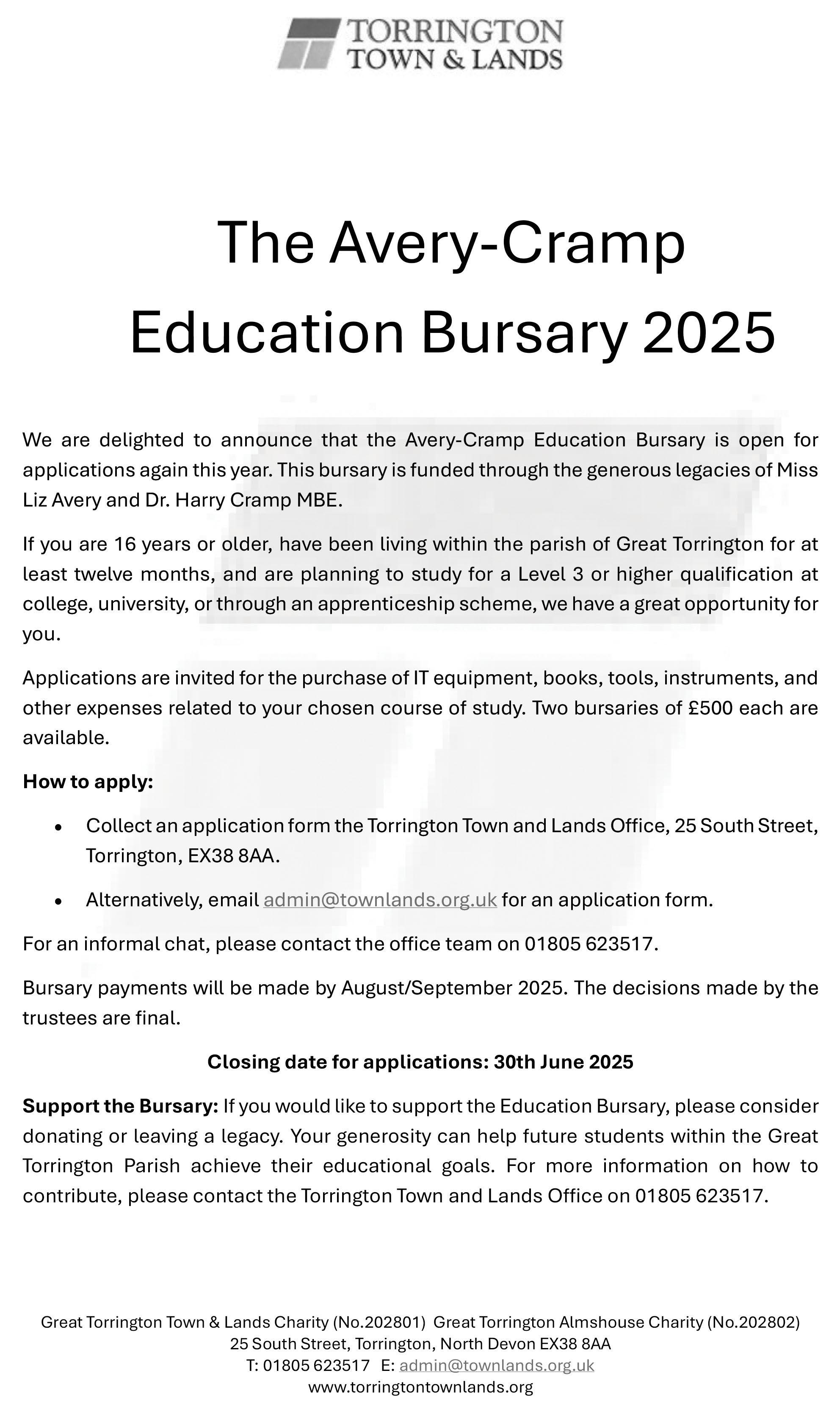 Postal address: The Crier, Castle Hill, Torrington, EX38 8AA. Website: www.great-torringtoncrier.co.uk