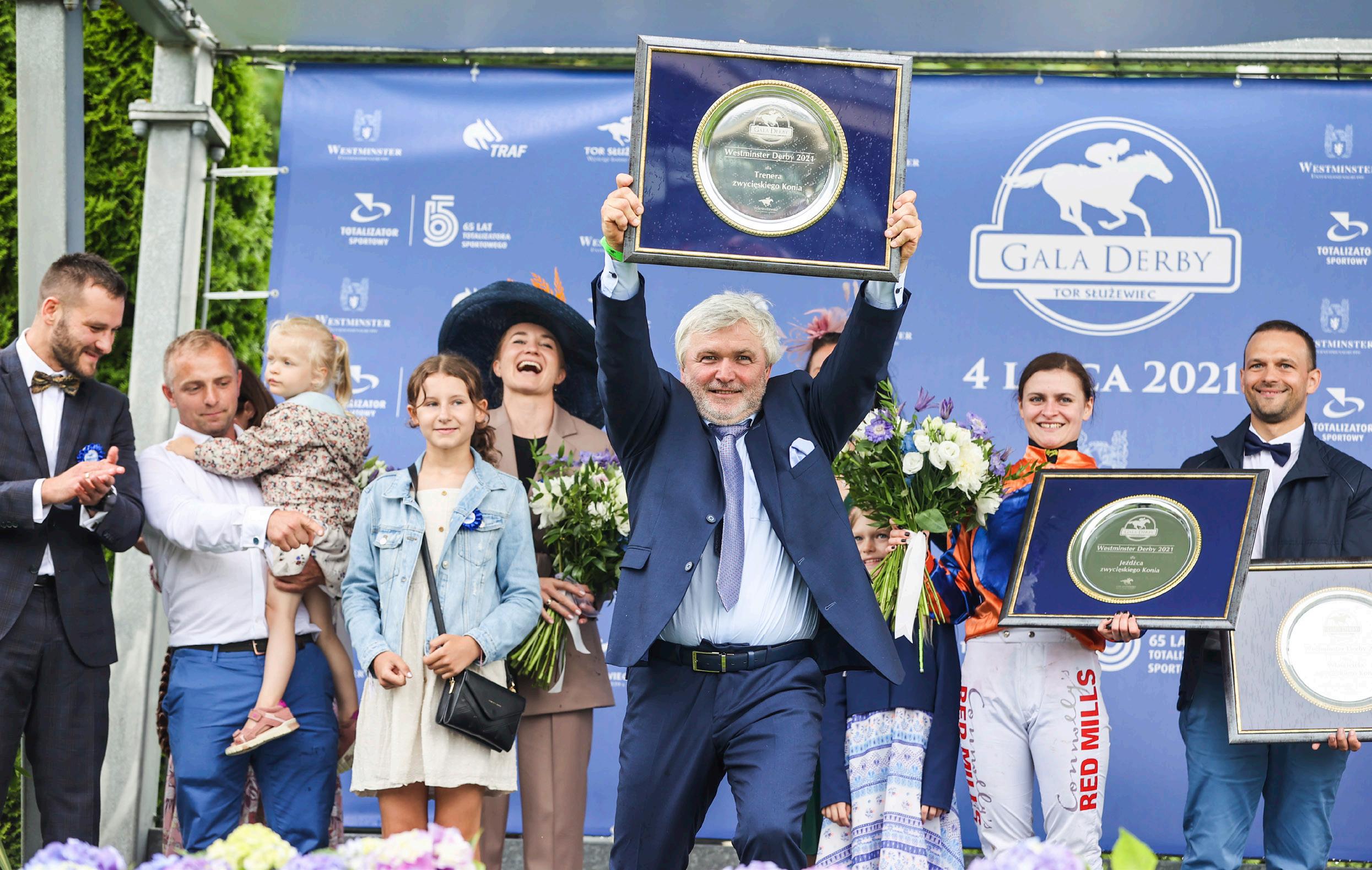 Oczywiście te pierwsze. Rozegrano je w 1896 roku na Polu Mokotowskim w Warszawie. Wygrał kasztanowaty Wrogard, należący do śpiewaka operowego Jana Reszke. W Anglii Derby (od nazwiska dwunastego lorda Derby, który wygrał rzut monetą o prawa do nazwy tej gonitwy z Sir Charlesem Bunburym) rozgrywane są nieprzerwanie od 1780 roku do dziś, nie zakłóciły ich nawet wojny. Pierwszym historycznym derbistą był kasztanowaty Diomed, należący właśnie do pechowca Bunbury’ego. Najwięcej zwycięstw jako trener odniósł Andrzej Walicki. Na Służewcu jego konie sięgały po błękitną wstęgę aż 13 razy. Dodatkowo koń w jego treningu - Korab wygrał Derby w Wiedniu w 1985 roku. Ostatni raz trener zwyciężył Derby z klaczą Nemezis w 2019 roku.