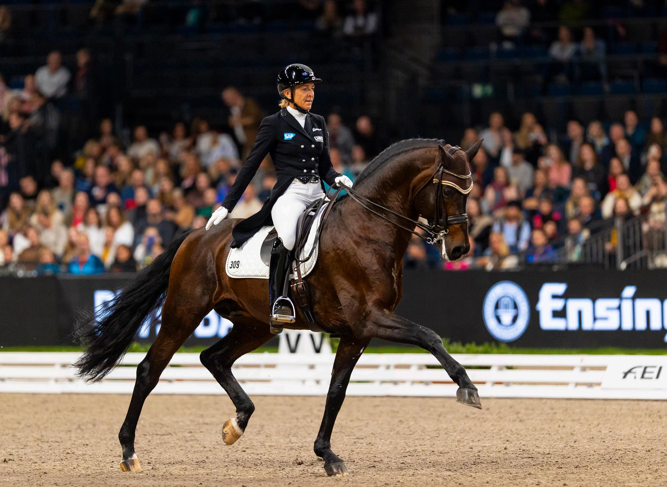 Bardzo cieszy mnie, że już od dziewięciu lat mam w swojej stajni konia Franziskus FRH (Fidertanz x Alabasrter), z którym intensywnie pracuję. Oczywiście mieliśmy po drodze kilka wzlotów i upadków wynikających z jego kontuzji, ale jestem bardzo szczęśliwa, bo wspólnie zrobiliśmy ogromne postępy. Całkiem niedawno zwyciężyliśmy w Pucharze Świata w konkursie GP Freestyle w Munster. Również na tych zawodach (CDI Zakrzów) widać było, że koń zachowuje się bardzo dobrze. I mamy ze sobą coraz lepszą relację. Myślę, że w dalszym ciągu będzie się ona rozwijać.