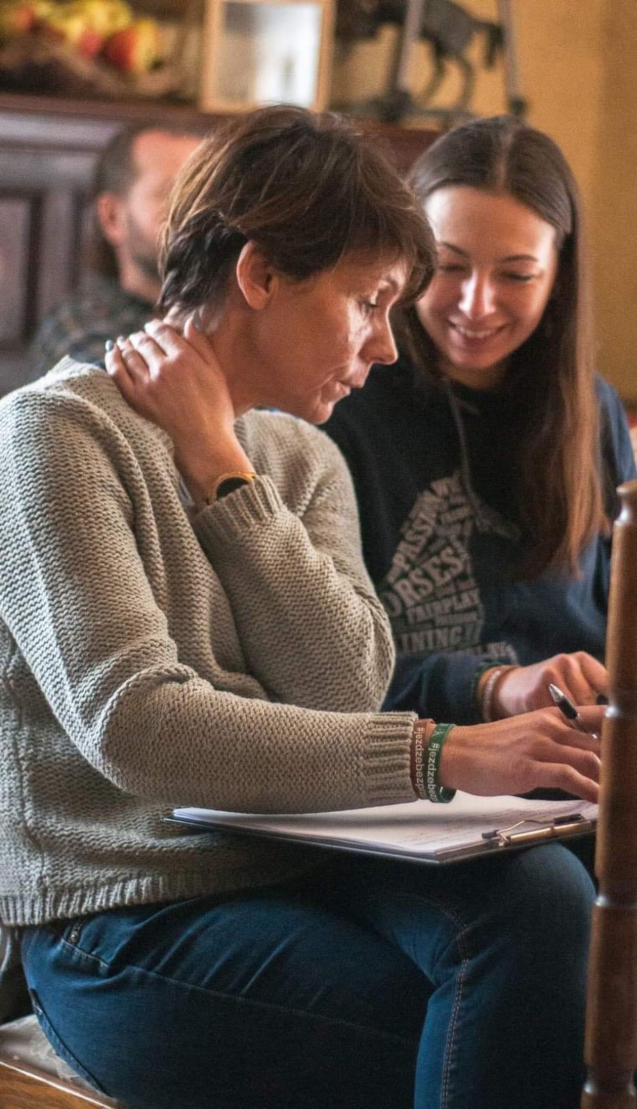 wyższym poziomie adrenaliny - i na tym skupiła się druga część wykładu. Jakiego rodzaju ćwiczenia, jakie zadania, z jakim natężeniem i jak rozłożone w czasie w procesie szkoleniowym stawiać folblutowi, z którym chcemy uczestniczyć w rywalizacji sportowej? Jakie techniki jeździeckie stosować w konkretnych przypadkach, ucząc folbluta skakać, czy galopować w krosie z zachowaniem „chłodnej głowy”, ale w pełnej dynamice? Jakie kompetencje powinien zdobyć jeździec oprócz techniki jeździeckiej, aby nasz folblut zamienił się w smoka? I tu anglik wchodzi na wyżyny i staje się nie tylko przyjacielem, ale jednym z najbardziej wymagających nauczycieli w naszym rozwoju osobistym. Jego wrażliwość motywuje i inspiruje jeźdźców do stawiania na lepszą wersję siebie jako człowieka i odkrywa w nas pokłady empatii, ciekawości i nowych możliwości. Uczestnicy byli zaskoczeni potencjalną głębią tej relacji i poziomem subtelności, którą możemy osiągnąć, wsłuchując się w folbluta. Każdy kto wybiera tę rasę, może otworzyć się na niekończącą się przygodę z rozwojem osobistym, niekoniecznie na parkurach czworobokach czy krosach, ale jako podróż w głąb siebie.