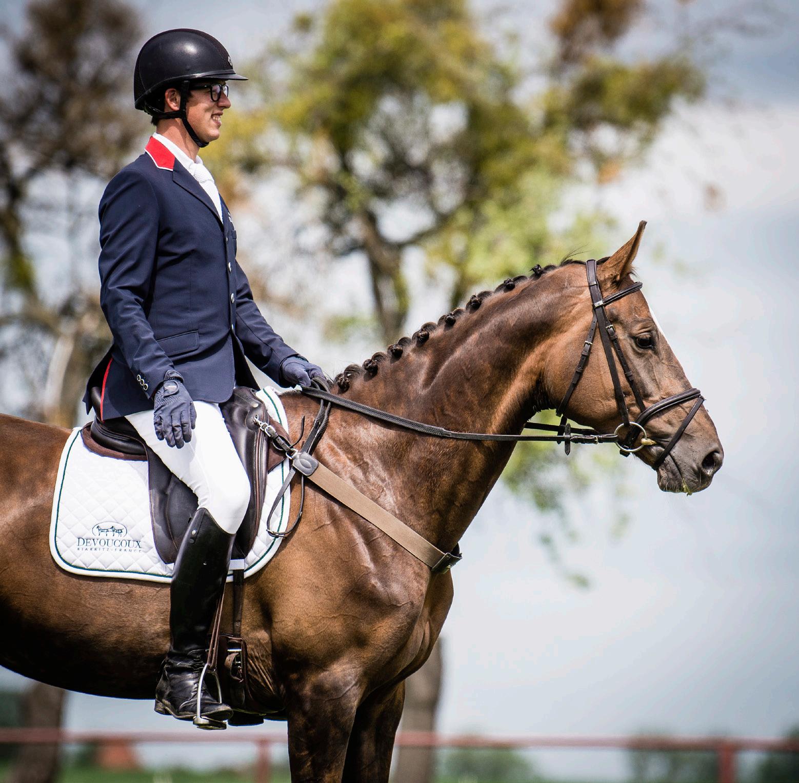 Ciągle czekam na konia pełnej krwi, z którym miałby okazję startować na międzynarodowym poziomie. Aktualnie mam w stajni folbluta własności Jerzego Engela. Tebidoro to koń, który biegał na Służewcu w sezonie 2018, wygrywając 3 gonitwy. Później trafił do Mariusza Kleniuka, który bardzo dobrze zaprezentował go na Mistrzostwach Polski Młodych Koni. Ze względów logistycznych koń aktualnie jest u mnie w treningu. Jest równy, bardzo powtarzalny, co jest pożądaną cechą szczególnie dla juniorów. Myślę, że wkrótce znajdzie nowego właściciela w gronie młodych adeptów WKKW. Świetnym koniem pełnej krwi, którego miałem okazję poznać był Bardo, koń mojej dziewczyny Małgorzaty Koryckiej, która jechała z nim m.in. w Mistrzostwach Europy Młodych Jeźdźców w WKKW Malmo, Szwecja (2012). Start był bardzo udany, jako jedyna polska para pokonali skomplikowany kros. Jest koniem bardzo dokładny, szczerym, dużo dającym z siebie. Aktualnie przebywa w naszej stajni na emeryturze.