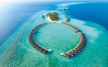 Description: Sun Aqua Iru Veli, a five-star all-inclusive resort in Dhaalu Atoll, offers villas with private pools and ocean views, set on a stunning island where dolphins provide daily entertainment.