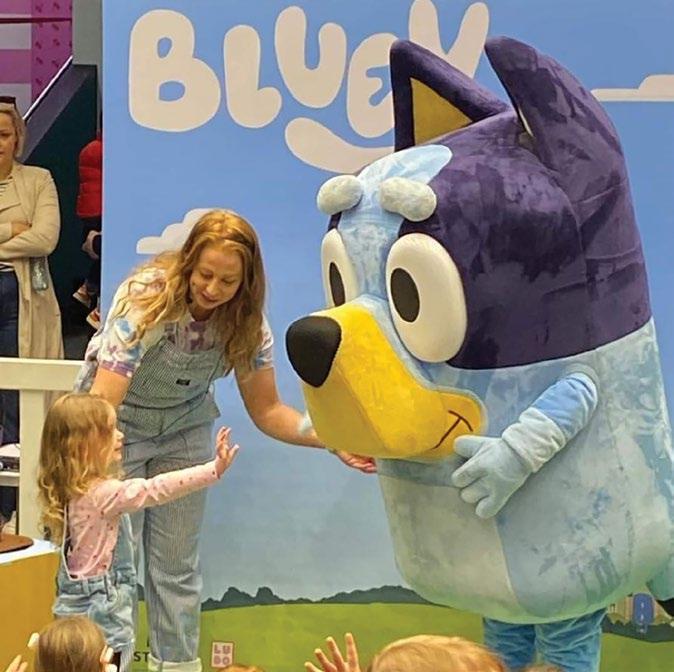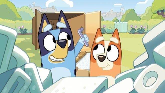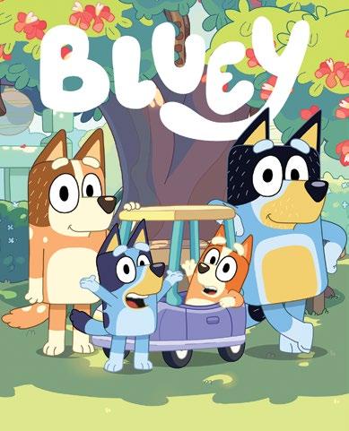 excited to bring Bluey to the show. The Hammerbarn Shopping Playset from Moose Toys sees Bluey and Bingo ready to shop at Hammerbarn, their local home improvement store sode of the popular animated series. The Hammerbarn Shopping Playset towers at nearly two feet tall with four stories, eight play areas and 12 play pieces. The supersized, lights and sounds shopping-themed playset also features an elevator that gives shoppers a “lift” to each department, among them: a garden center with interactive gnomes; a “lighting department” that lights up and plays more than 50 familiar phrases from the hit series accessible with the simple press of a paw button; a special flipping wall that reveals paint color chips; and a rooftop café to grab a sausage sizzle or pizza. When shopping is complete, place the cart on the return pole and watch it spin down to the ground floor. This expansive playset with all its fun features is something kids can spend hours “checking out.”