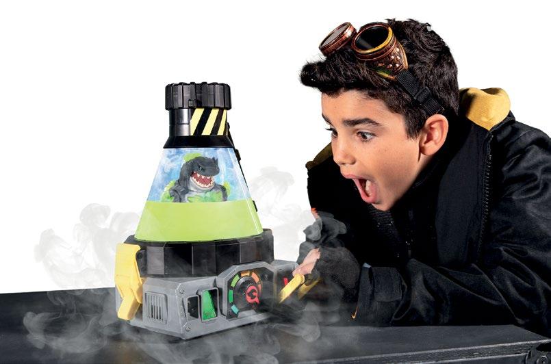 scan to begin a humanbeast connection. Add the ingredients one by one and crank up the pressure to be amazed by the reactions from the beast within, including crackling sounds and epic roars, to flashing lights and fizzing bubbles, all while Bio Mist flows from the chamber. The final step is the most fearsome, as the beast’s power is given from the aptly named Pandemonium Crystal. Turn up the pressure dial and cap the chamber as it starts to bubble. When the alarms sounds, pull the emergency lever to drain the ingredients, then open the chamber to release the Bio Mist and unleash the beast – either a totally jaw-some Mayhem Megashark or Havoc Hammerhead. Activate battle mode and complete the human-beast connection by pressing the simulated finger scan on the beast’s chest plate. Attach its weapon and swing the beast back for a mighty “Power Slash Attack.” Loaded with action-packed battle fun, repeat the experiment again and again, and the fully articulated beast will evolve every time it is activated with new sounds, colors and ways to play.
