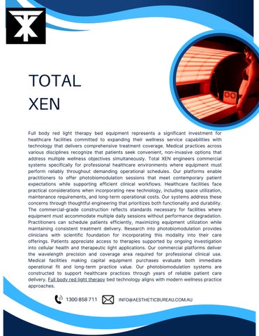 Full body red light therapy bed equipment represents a significant investment for healthcare facilities committed to expanding their wellness service capabilities with technology that delivers comprehensive treatment coverage. Medical practices across various disciplines recognize that patients seek convenient, non-invasive options that address multiple wellness objectives simultaneously Total XEN engineers commercial systems specifically for professional healthcare environments where equipment must perform reliably throughout demanding operational schedules Our platforms enable practitioners to offer photobiomodulation sessions that meet contemporary patient expectations while supporting efficient clinical workflows. Healthcare facilities face practical considerations when incorporating new technology, including space utilization, maintenance requirements, and long-term operational costs. Our systems address these concerns through thoughtful engineering that prioritizes both functionality and durability. The commercial-grade construction reflects standards necessary for facilities where equipment must accommodate multiple daily sessions without performance degradation. Practitioners can schedule patients efficiently, maximizing equipment utilization while maintaining consistent treatment delivery. Research into photobiomodulation provides clinicians with scientific foundation for incorporating this modality into their care offerings. Patients appreciate access to therapies supported by ongoing investigation into cellular health and therapeutic light applications. Our commercial platforms deliver the wavelength precision and coverage area required for professional clinical use