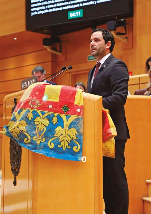 Sagredo emocionó al Senado al pedir, con la senyera manchada de barro de Paiporta, hechos y no promesas y reproches a los grupos políticos