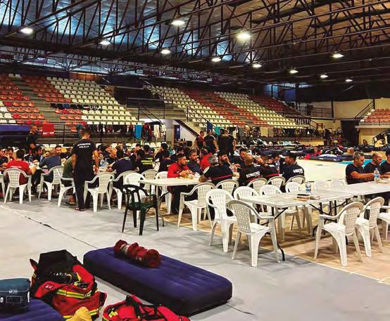 El pabellón deportivo municipal más grande de la ciudad se equipó con mesas, sillas, hidrolimpiadoras para quitarse el barro y colchones donados por la Asociación Valenciana de Comerciantes Chinos de la Comunidad Valenciana para facilitar la estancia de los bomberos que han estado trabajando en las zonas afectadas por la DANA.