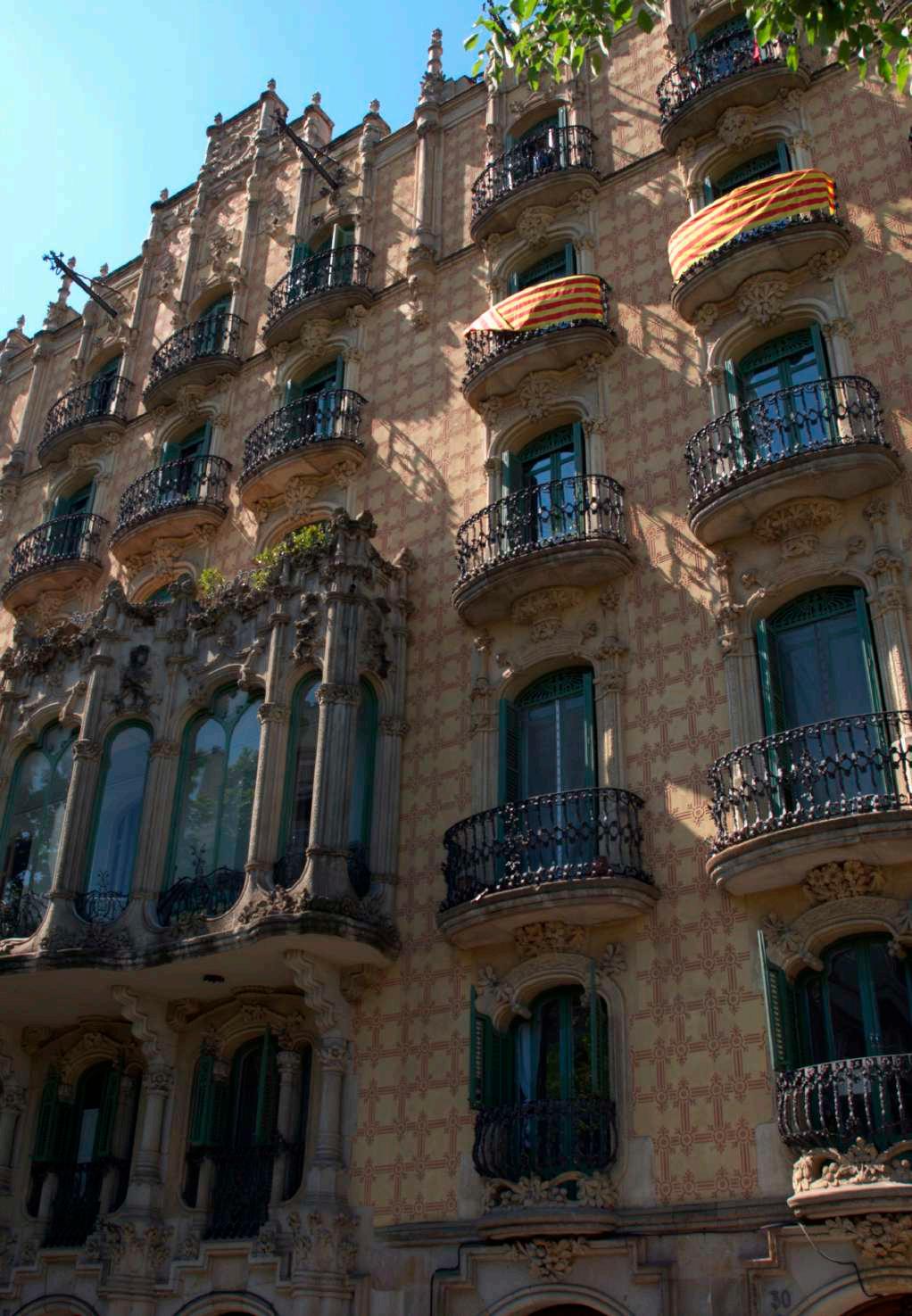 Dissenyades per Jaume Torres i construïdes per Ricard Ramos a principis del segle XIX, coincidint amb l’inici del noucentisme, tot i que el modernisme és present en tot l’edifici. La façana està feta amb fons d’esgrafiats de color beix i dibuixos blancs amb ornaments, i les tribunes són de pedra sorrenca de Montjuïc. Destaquen també les baranes de forja, que a la part central de la tribuna presenten forma d’abella. Els cinèfils les reconeixeran com un dels escenaris de la pel·lícula “Todo sobre mi madre”.