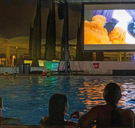 Projecció de curts del Fantosfreak a la piscina, abans del festival. NÚRIA