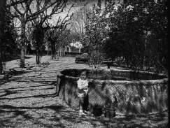 13. Infant i bassa a l’ombra. Un nen petit recolzat sobre una bassa en un jardí ombrejat, l’encant d’aquestes propietats burgeses.