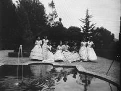 9. Dames de blanc als jardins. L’escena d’un grup de noies joves, vestides amb elegància, evoca les trobades socials de l’estiueig burgès.