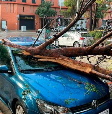 A Ripollet, a més de moltíssims arbres caiguts, el fort temporal va provocar la caiguda d’una balaustrada de la Casa del Comú sobre dos vehicles i establi-