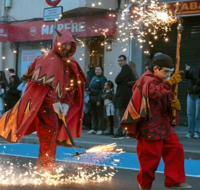 Correfoc amb Les Bruixes del Nord de Sabadell i els Diables de Ripollet. Itinerari: c. Puigmal, avinguda