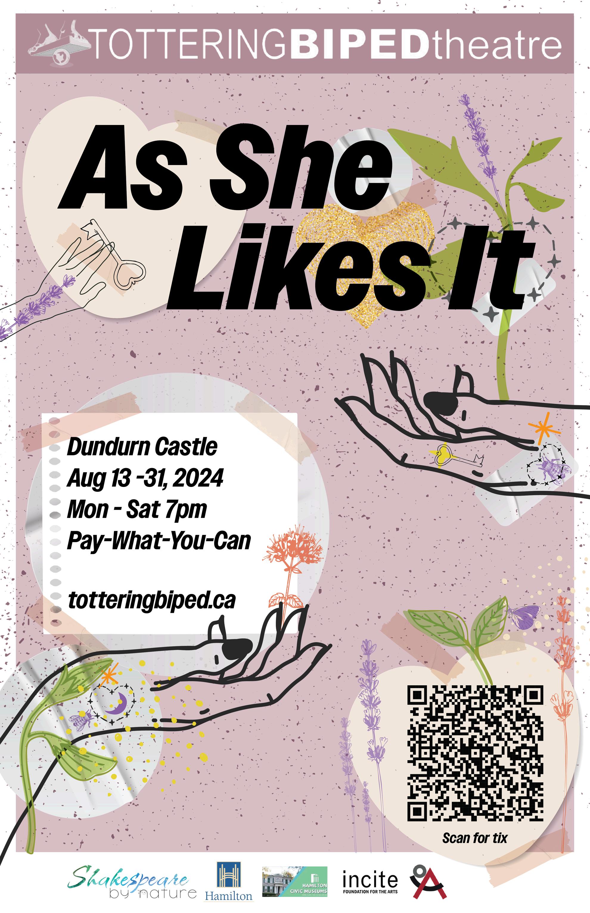 Zita Nyarady (she/her) exists in the centre of the Venn Diagram of dance, theatre and circus. Zita has worked with REAson D’être, Kaeja d’Dance, Theatre Direct, Guild Festival Theatre, Crossroads Theatre, LookUp Theatre, Clay and Paper Theatre, Connection Dance Works, Hercinia Arts Collective, Pilobolus Dance Theatre and Odin Teatret. Her company- The Grand Salto Theatretours original all ages physical comedy work nationally and internationally. Zita is also a founder of Seeking Giants Collective which works in stilts and spectacle. Zita was a Heliconian Club Dramatist in Residence and is in the Cirque du Soleil performer database. Zita is thrilled to be part of Tottering Biped’s Shakespeare in Nature. Not only has being part of this project provided her deep insight into the Lakeshore West GO train schedules but also the opportunity to meet and work with the amazing, brilliant and creative As She Likes It team!!!