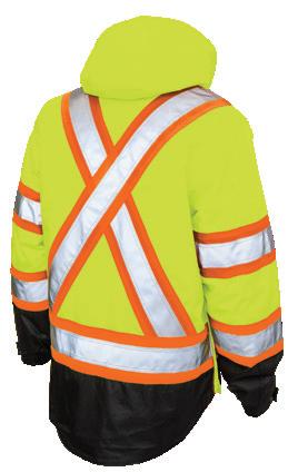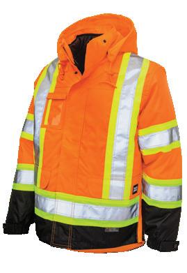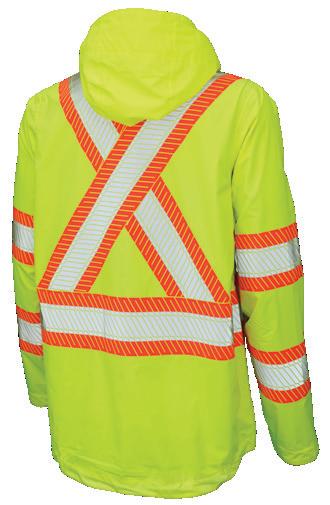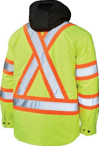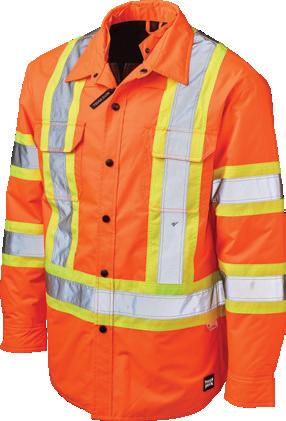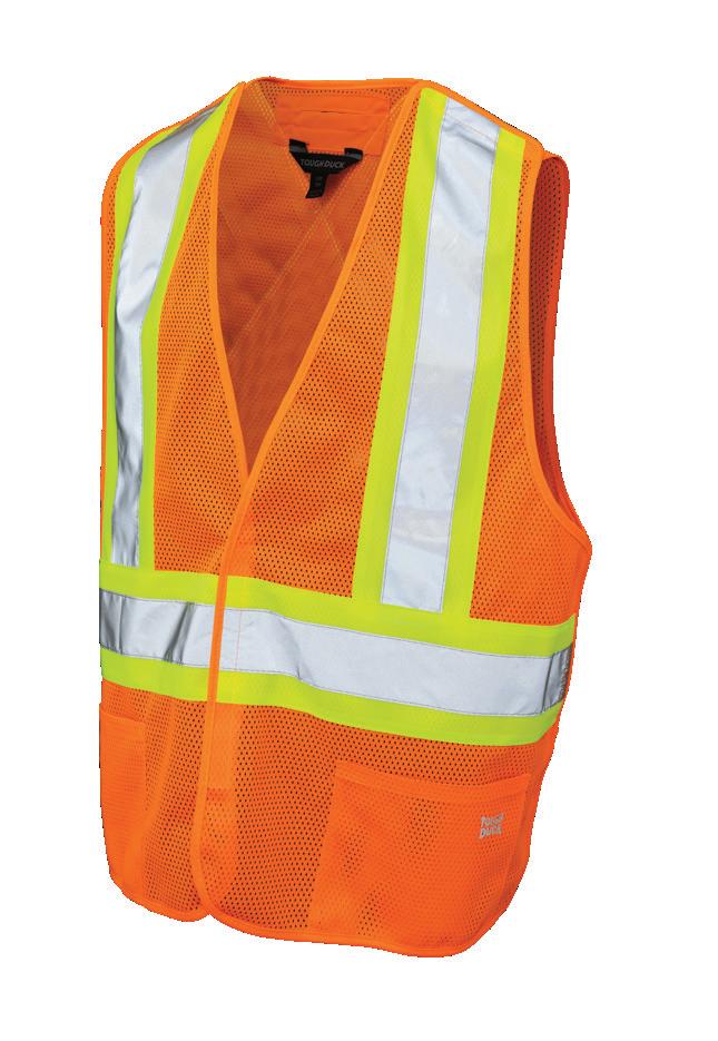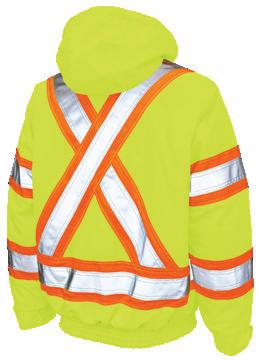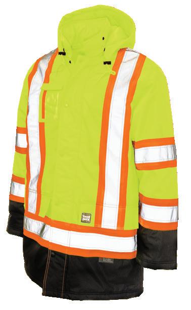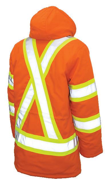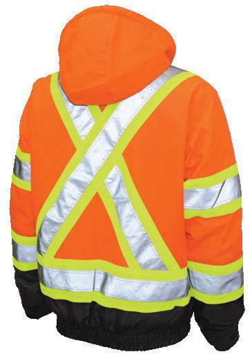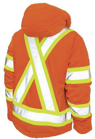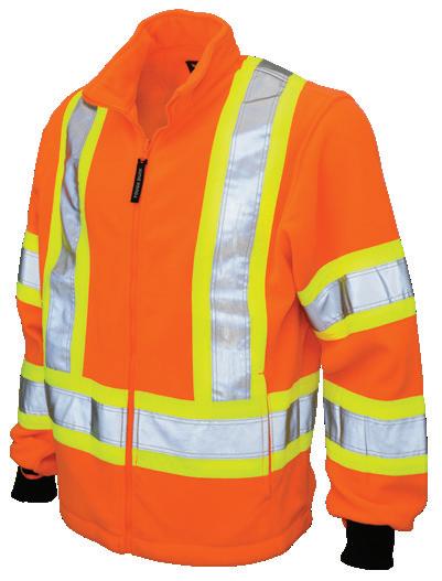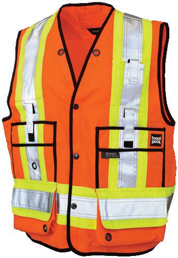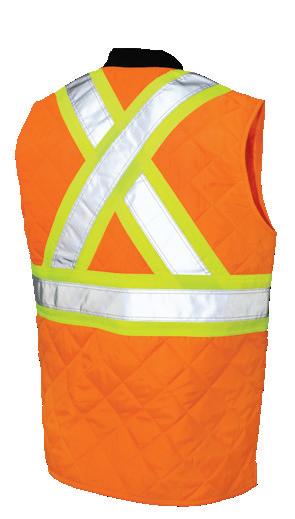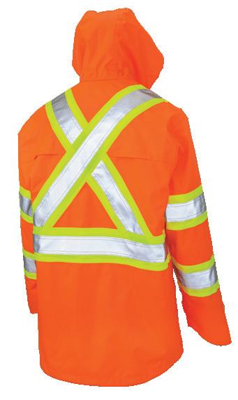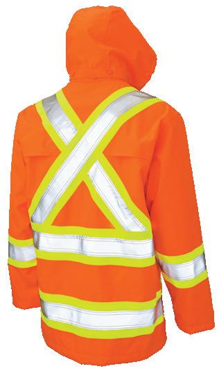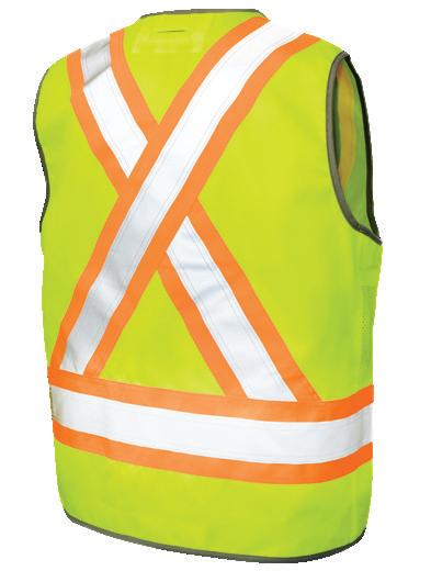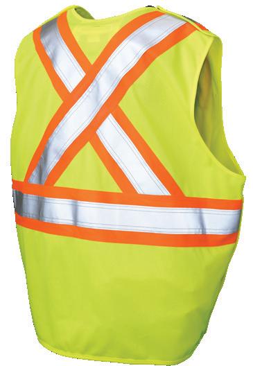 • Le vêtement doit couvrir au complet la partie supérieure du torse et être fait d’un matériau de base de couleur orangé, vert ou rouge fluorescente.