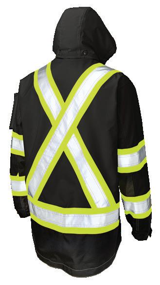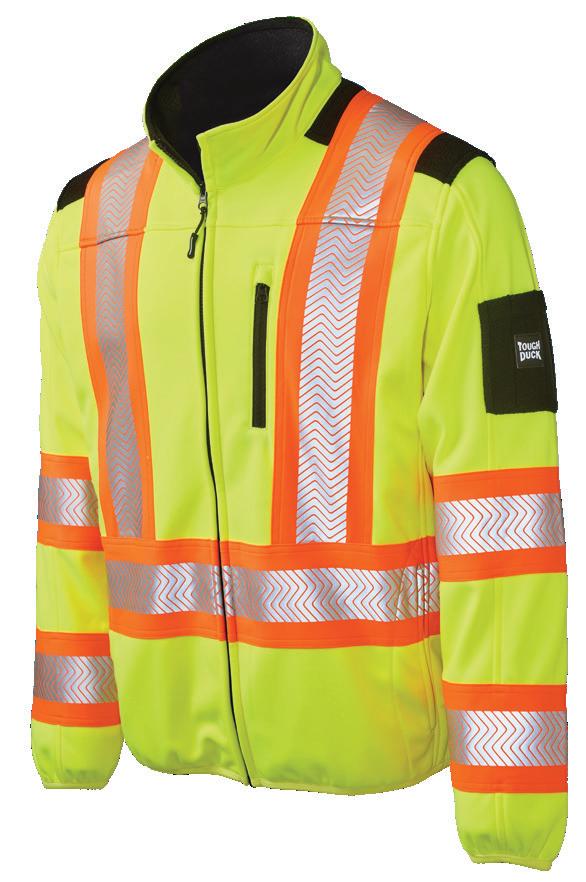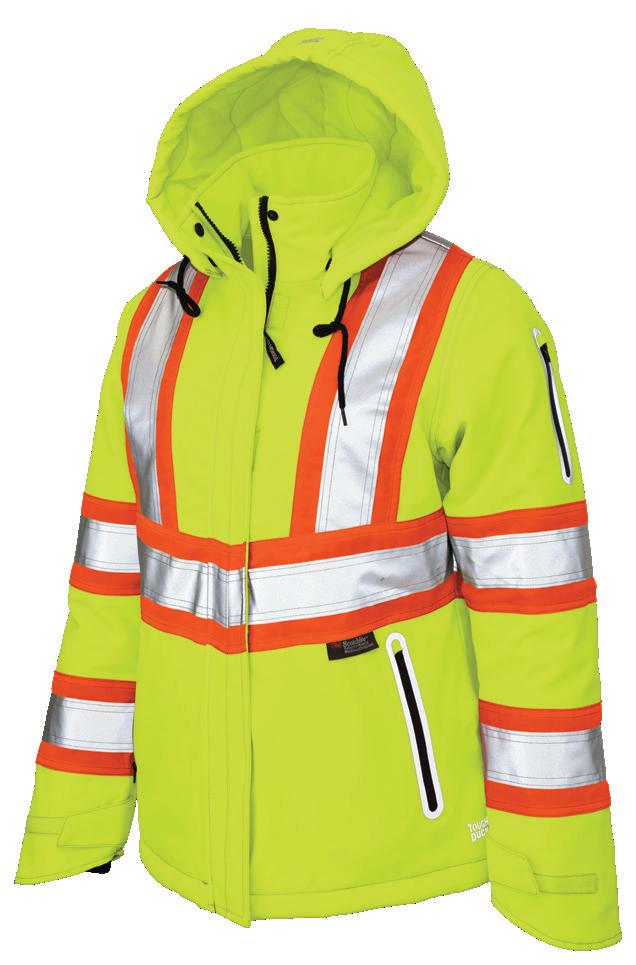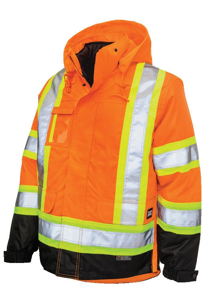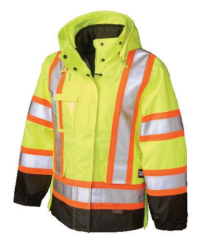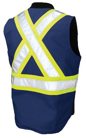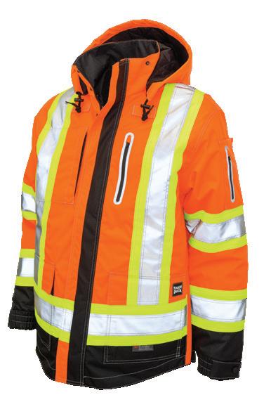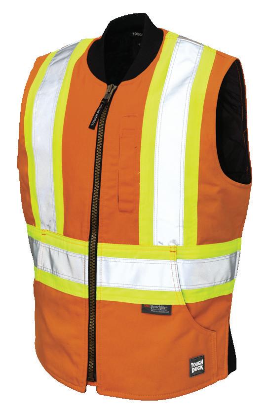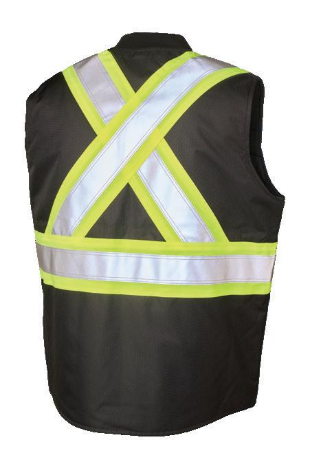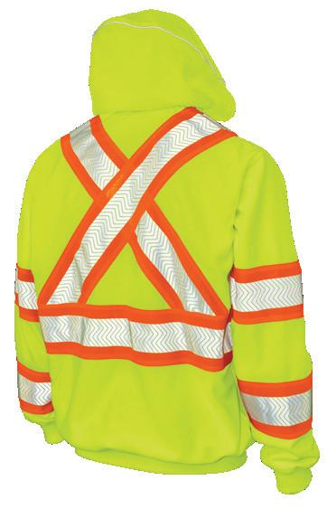 • Le vêtement doit couvrir au complet la partie supérieure du torse et être fait d’un matériau de base de couleur orangé, vert ou rouge fluorescente.