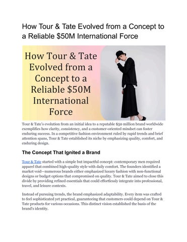 Tour & Tate (also known as Tour and Tate or Tour&Tate) makes high-end style accessible. Tour Tate is designed for men and all fashion-forward individuals. It combines tailored fits, luxurious comfort, and timeless design. From polos to jackets, each piece reflects premium craftsmanship without the luxury markup, providing exceptional value, quality, and global appeal for everyday wear.